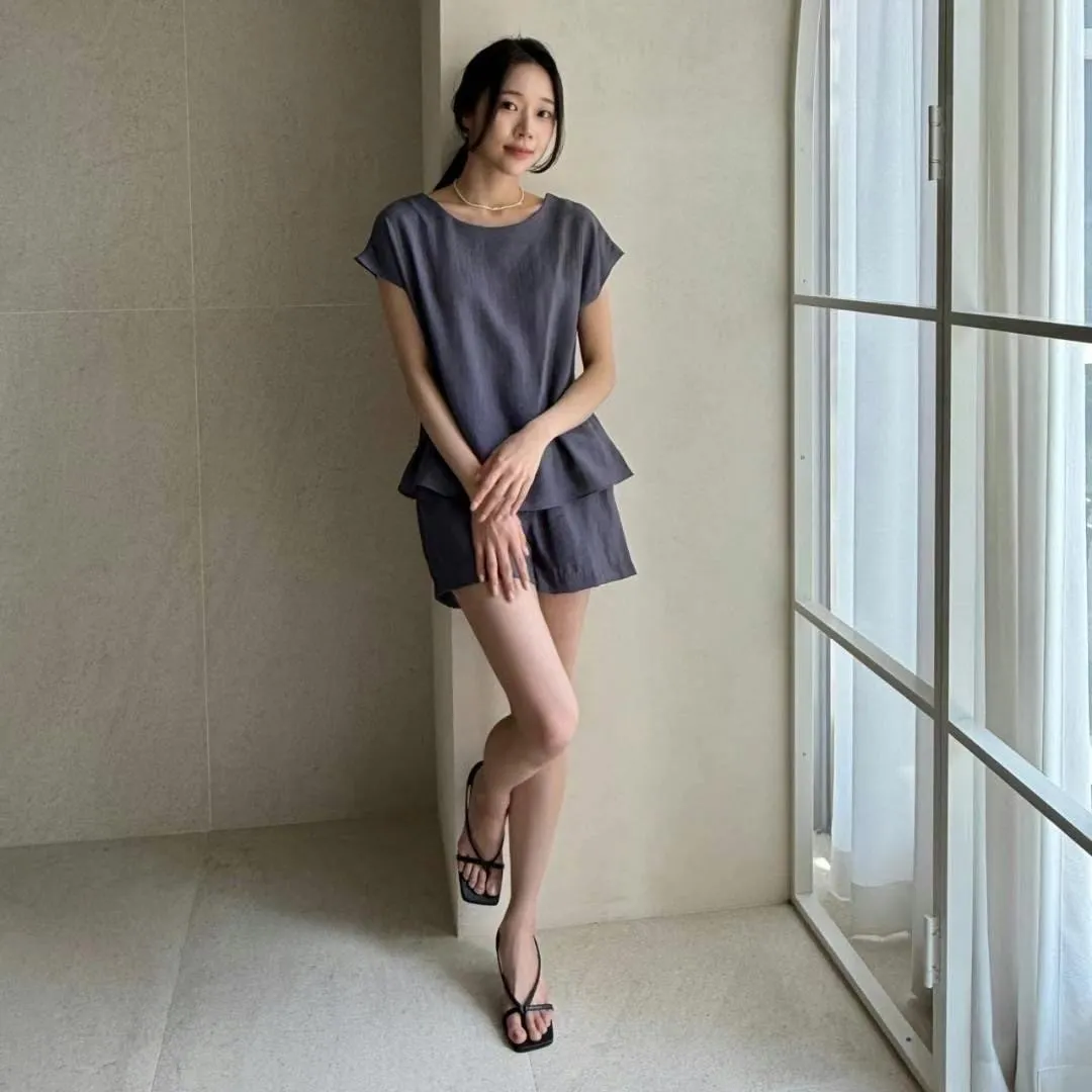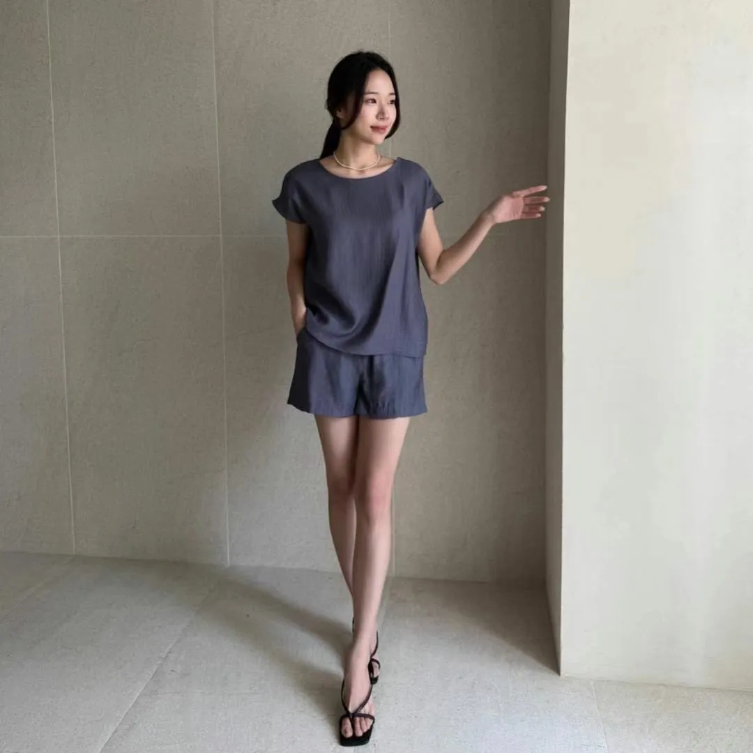 A17(限量特)簡約亞麻雪紡壓褶紋理感鬆緊腰圍短褲3色