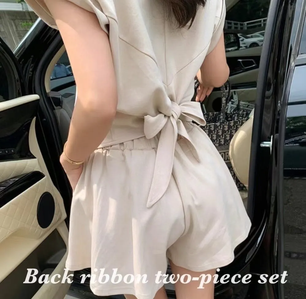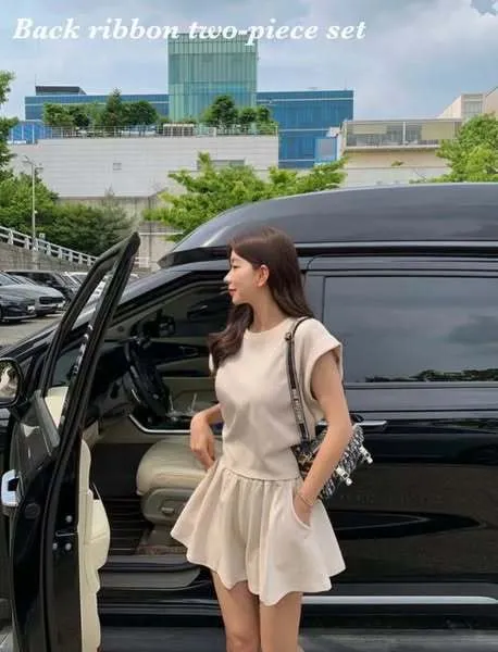 E19(限量特)休閒後綁帶上衣+彈性腰圍褲裙3色 (set)