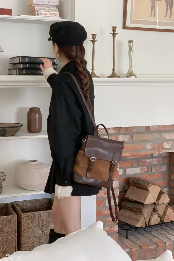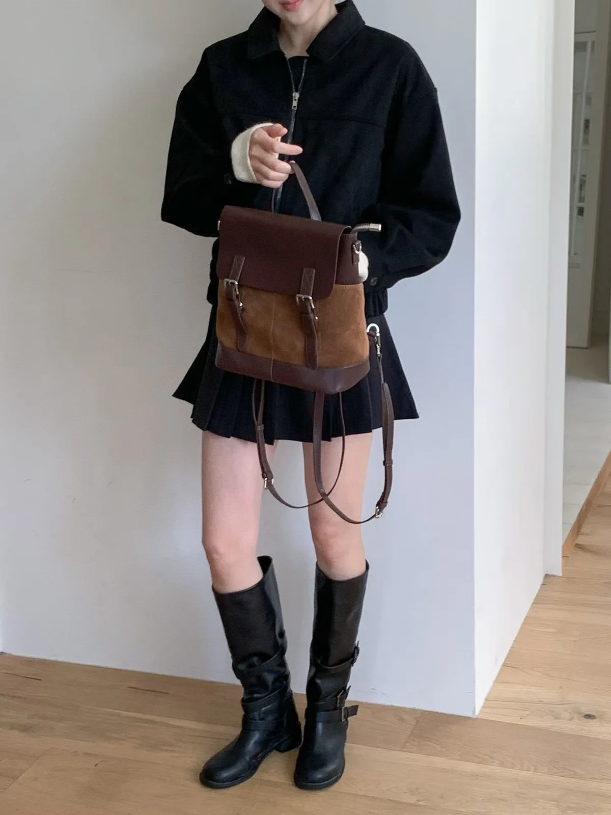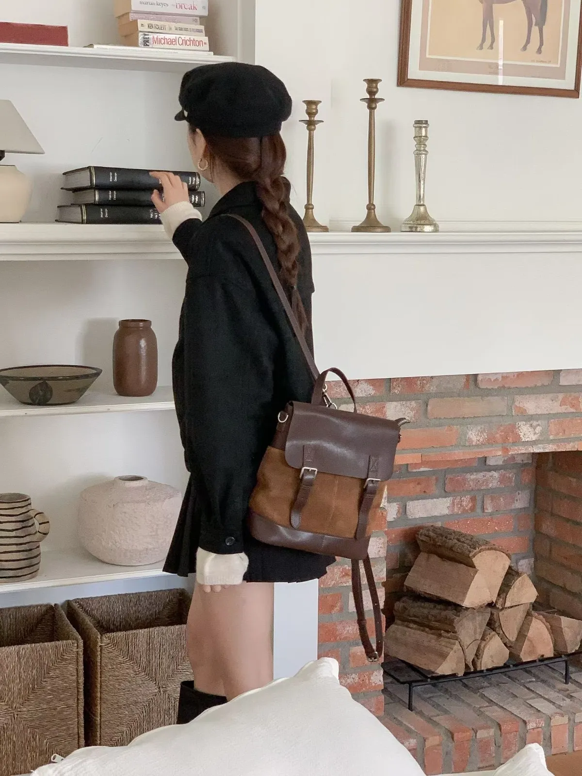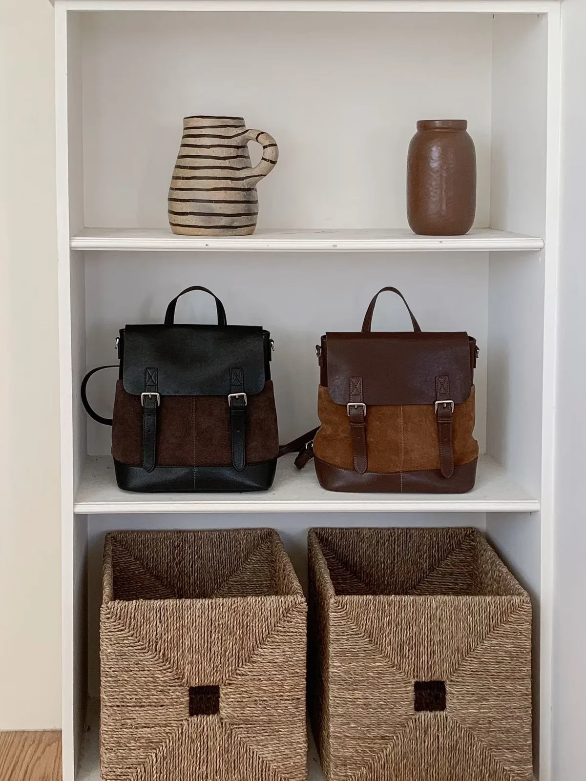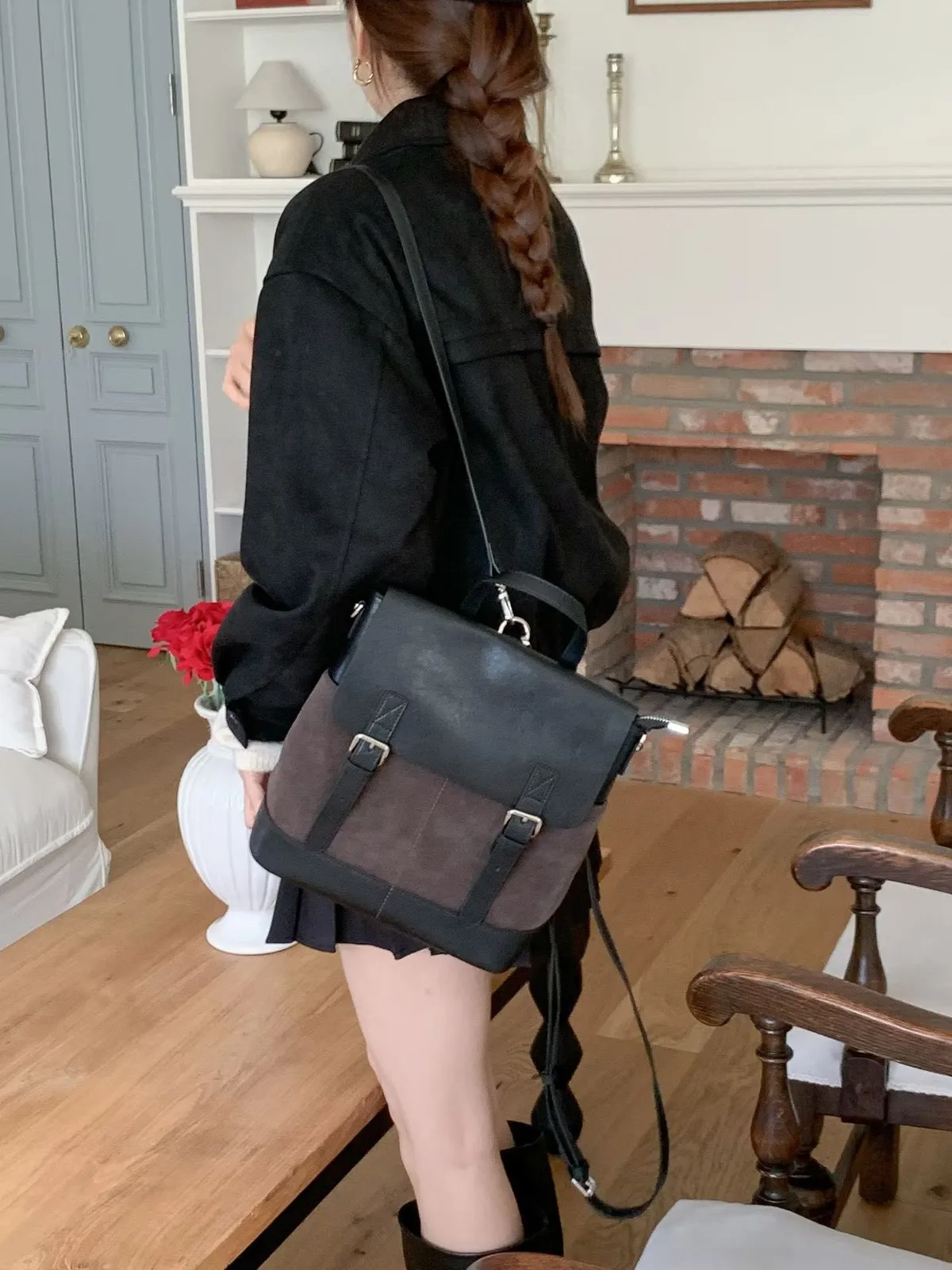 E23高檔麂皮單肩/斜背/可調復古拼色包2色