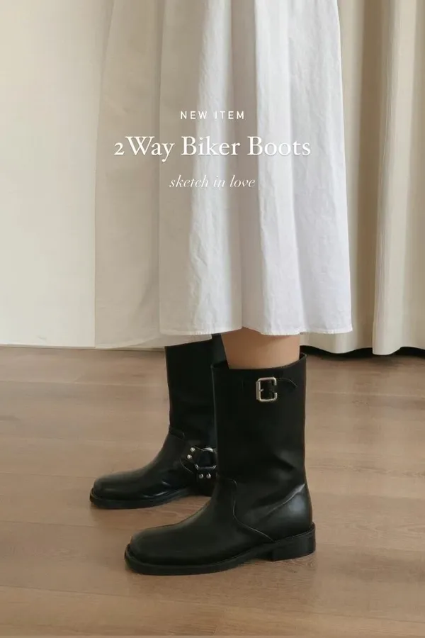 騎行靴子的帶扣細節腰帶;可拆卸的可以兩用穿的設計。