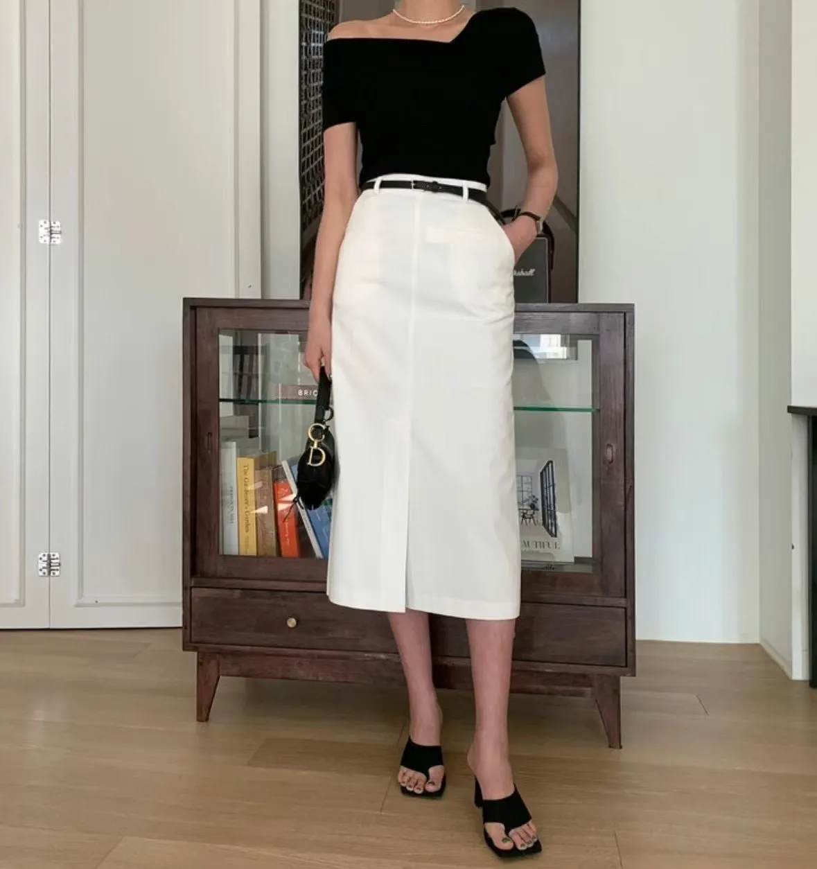 A39 0403(限量特)修身前開叉裙(S/M)3色