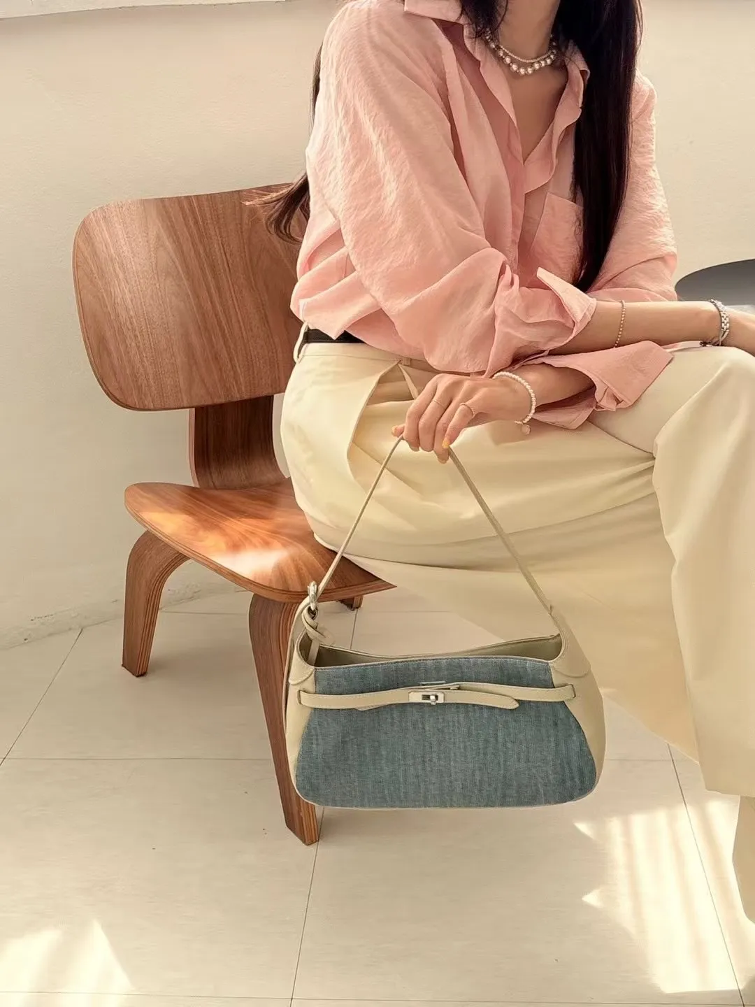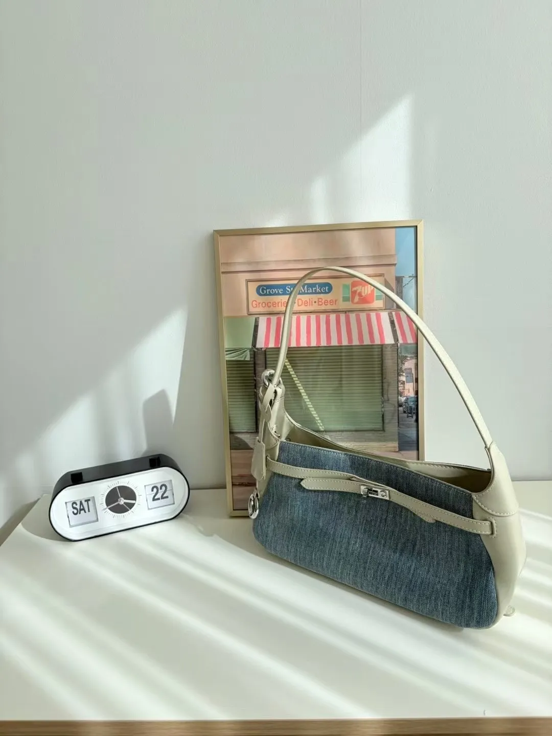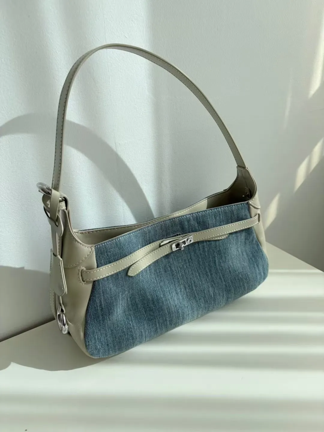 A12 0420(限量特)高檔櫃拼接肩背包牛仔真皮包