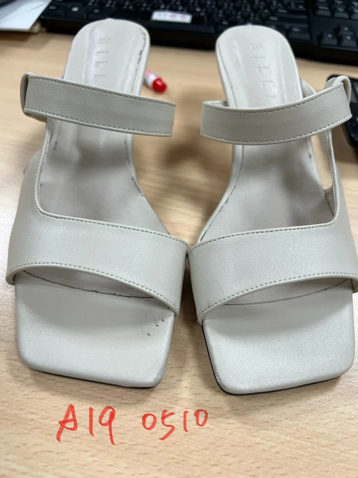 A19(限量特)設計感美型扭結方頭高跟鞋6cm(米白245穿拍鞋)