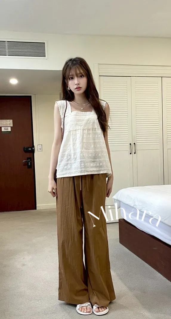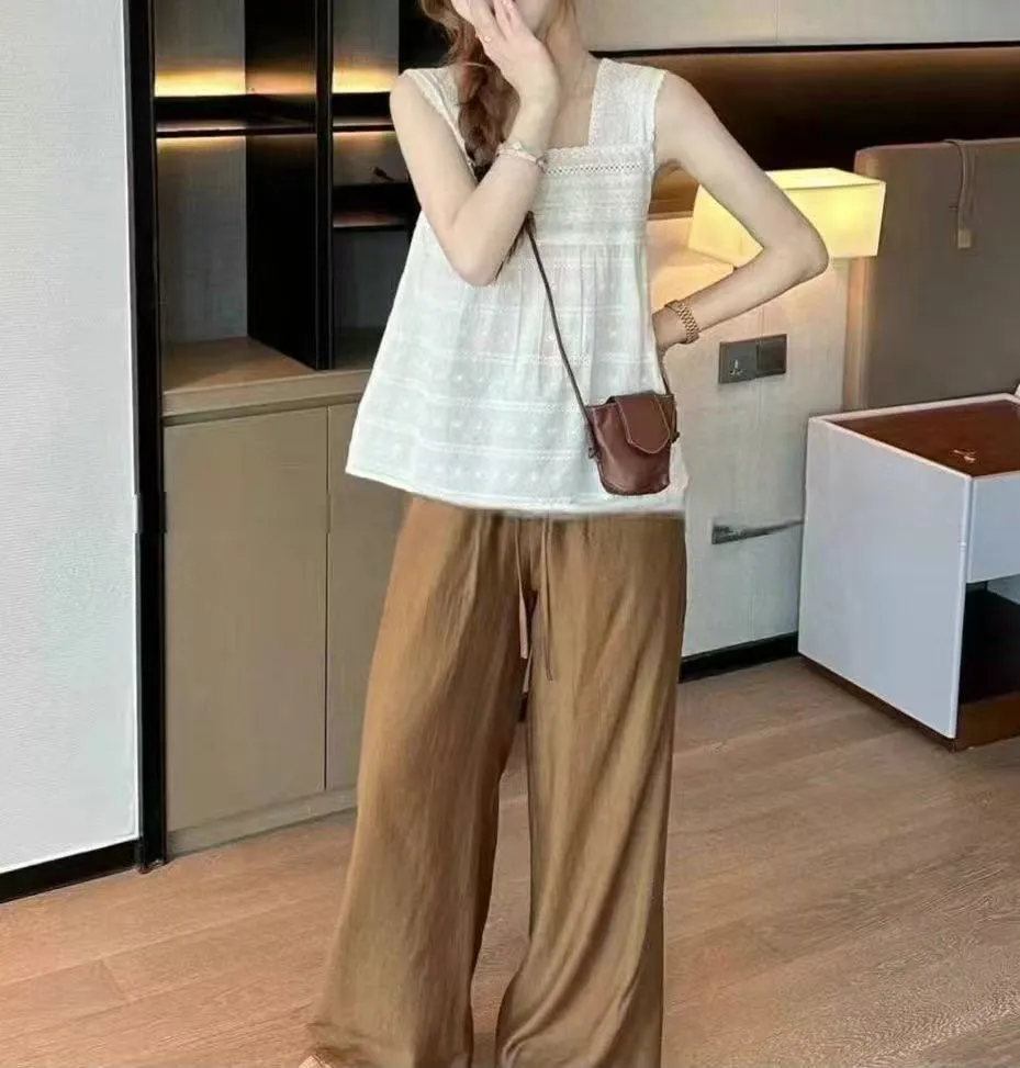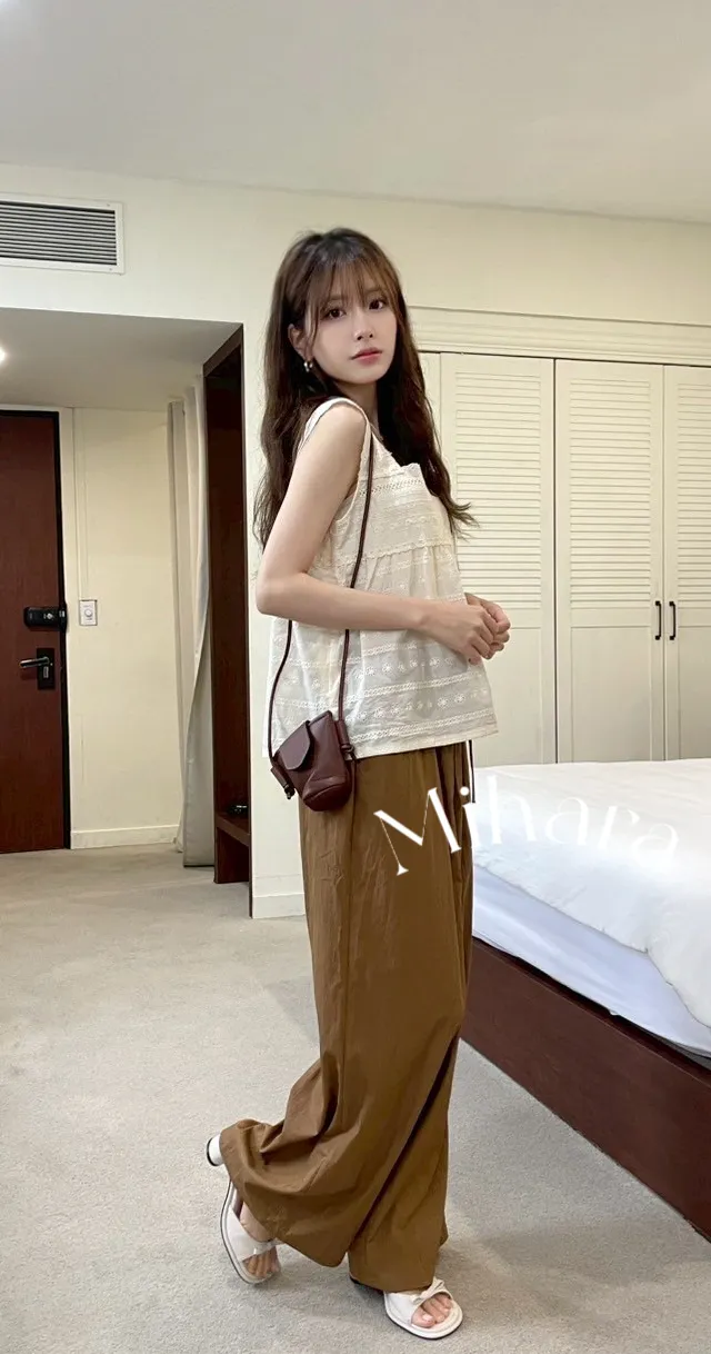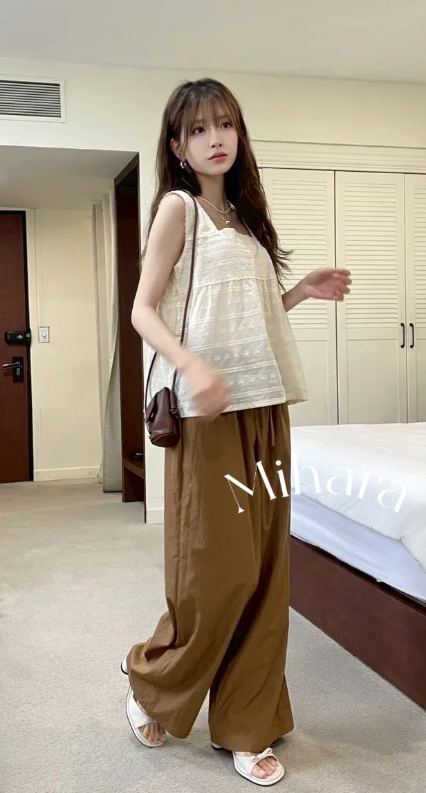 A3 0510布蕾絲背心+小包+彈性腰圍寬褲(set)