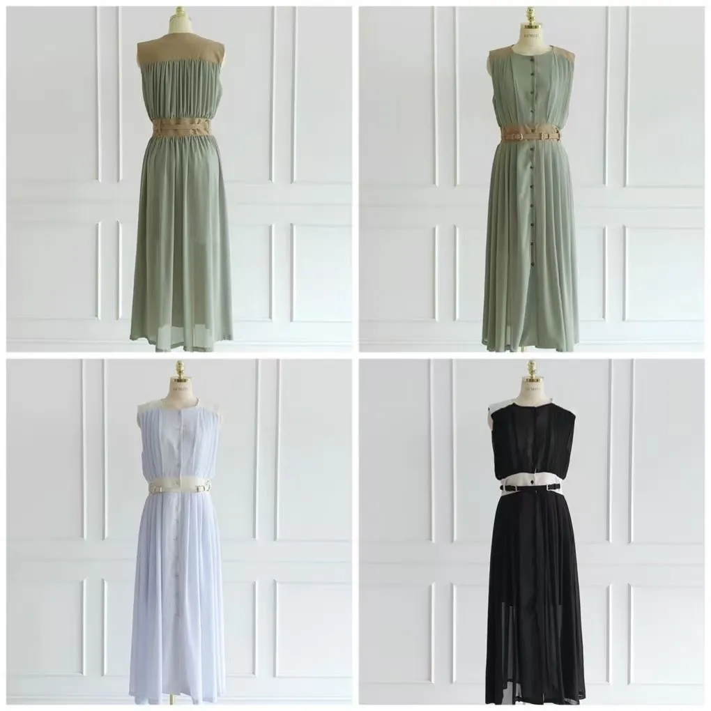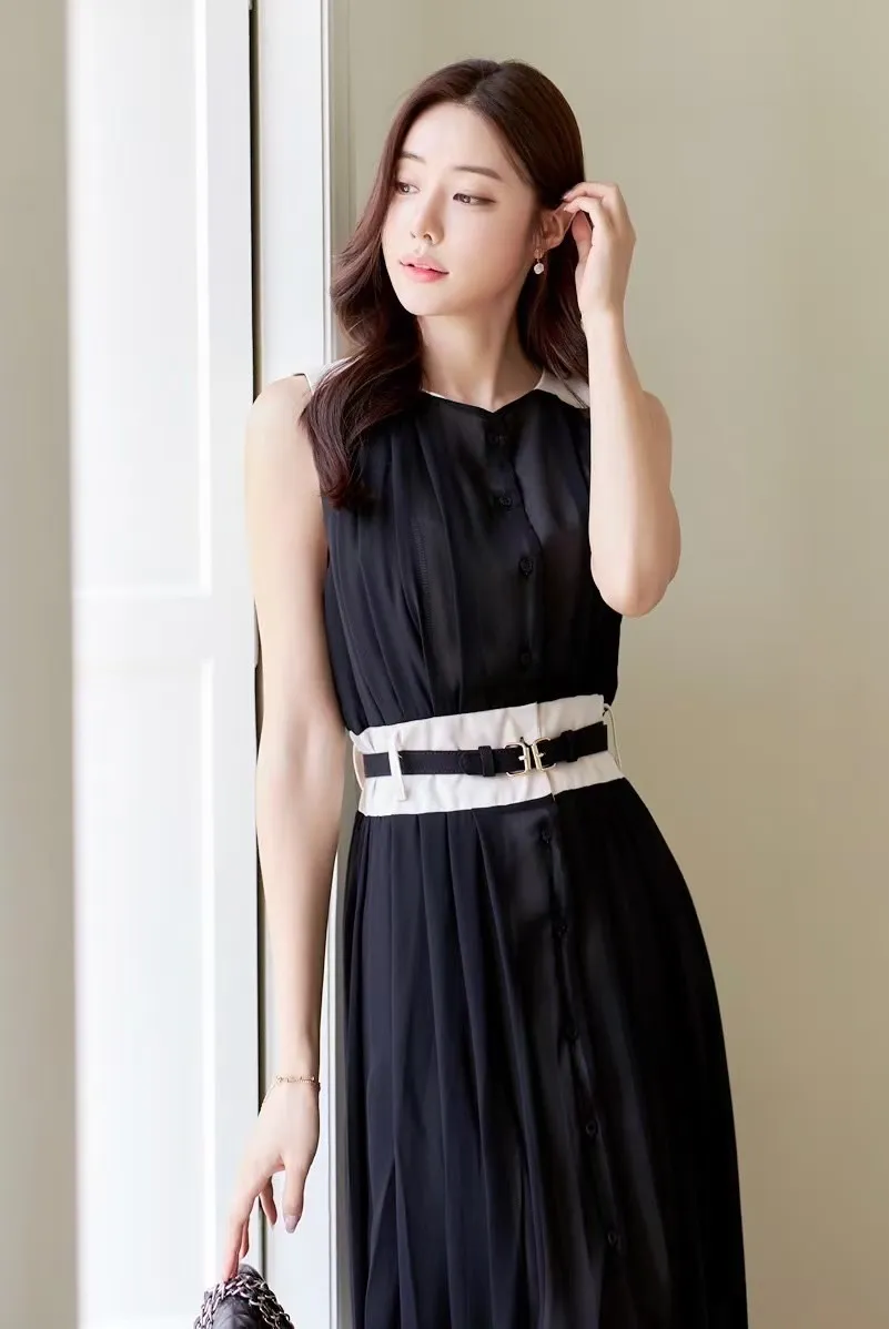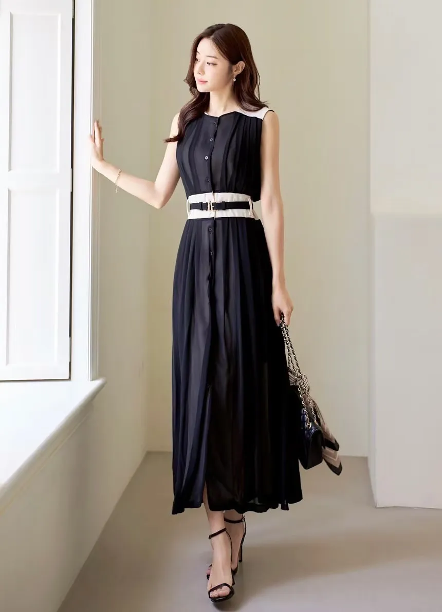 A20 0525(限量特)優雅氣質壓褶撞色洋裝3色(S/M/L)