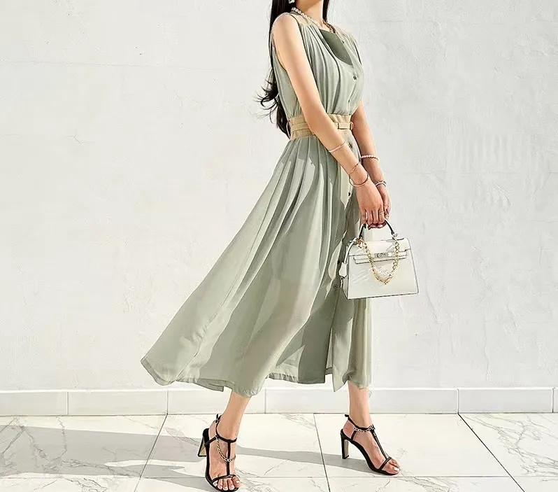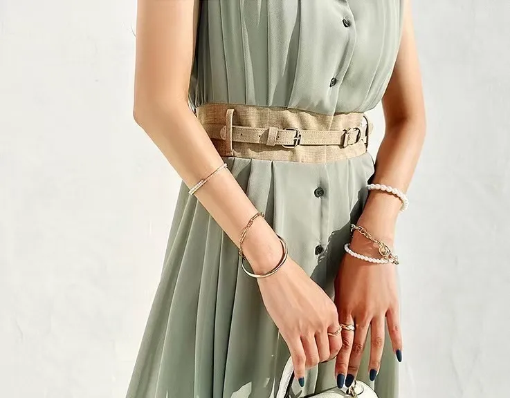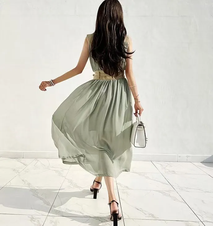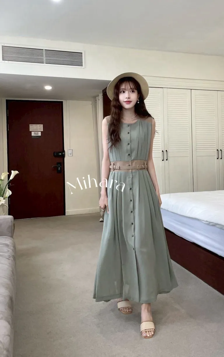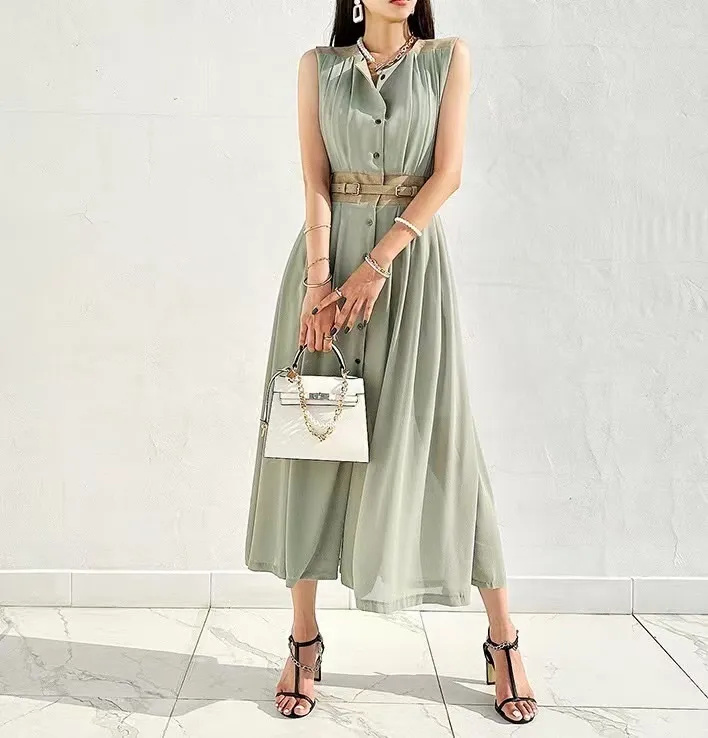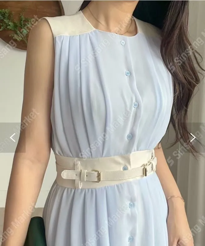 A20 0525(限量特)優雅氣質壓褶撞色洋裝3色(S/M/L)