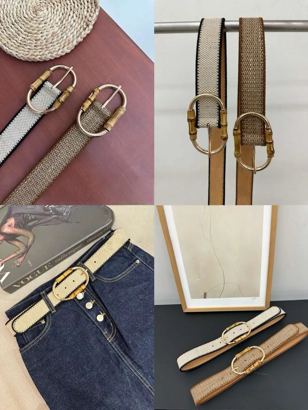A30 0525(限量特)名媛風真牛皮原木拼接麻料環釦腰帶2色