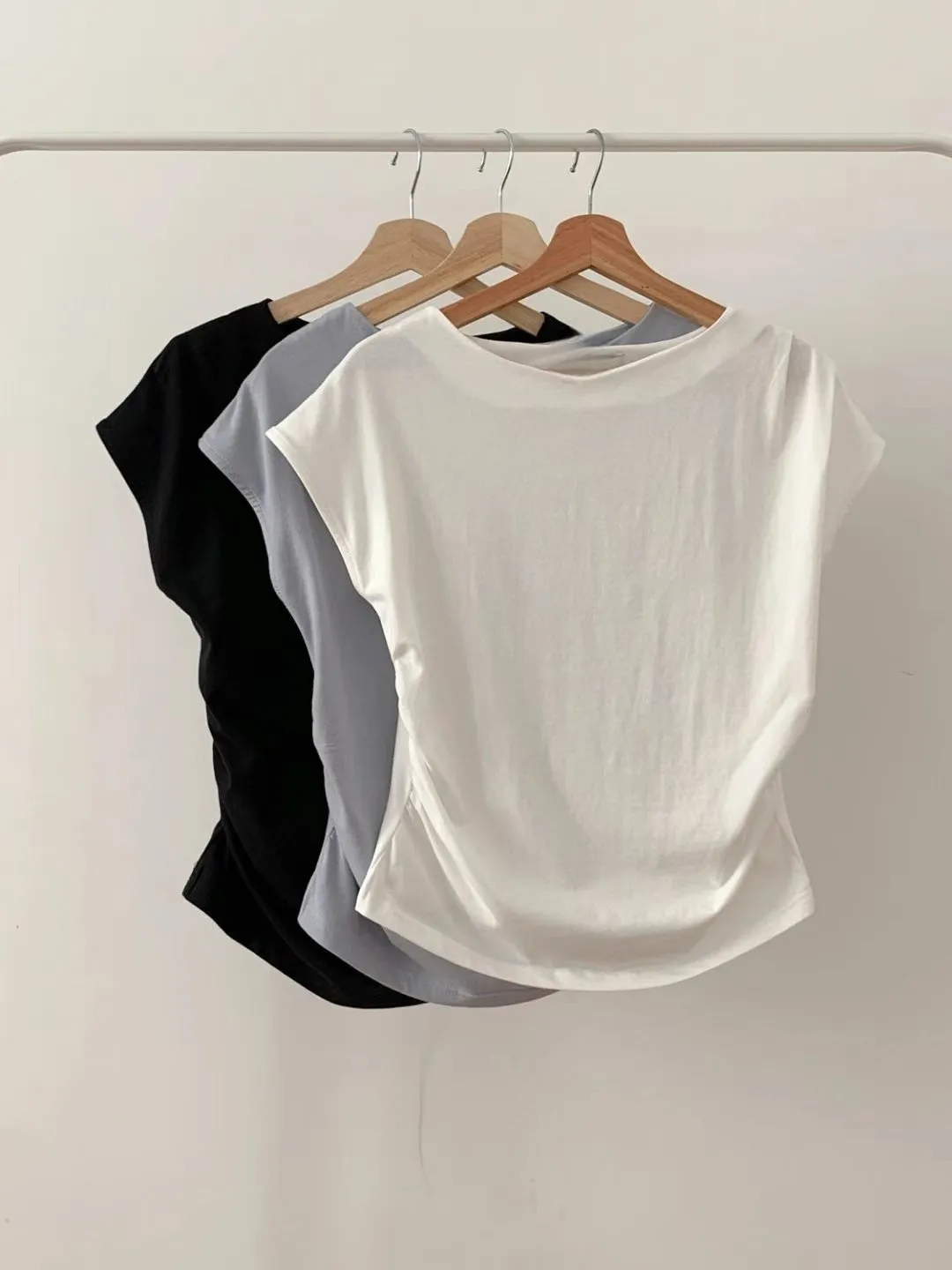 A40 0531(限量特)棉質抓摺素面上衣3色