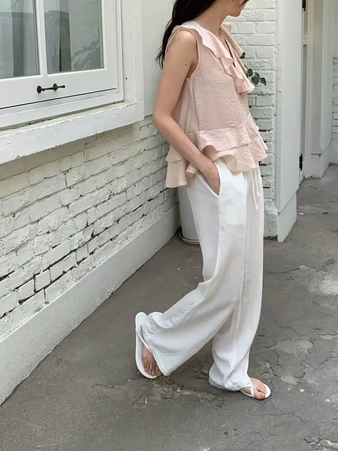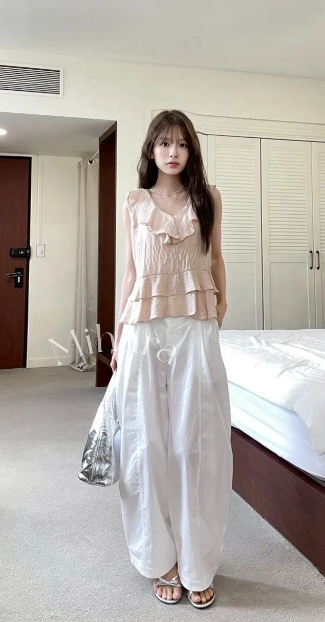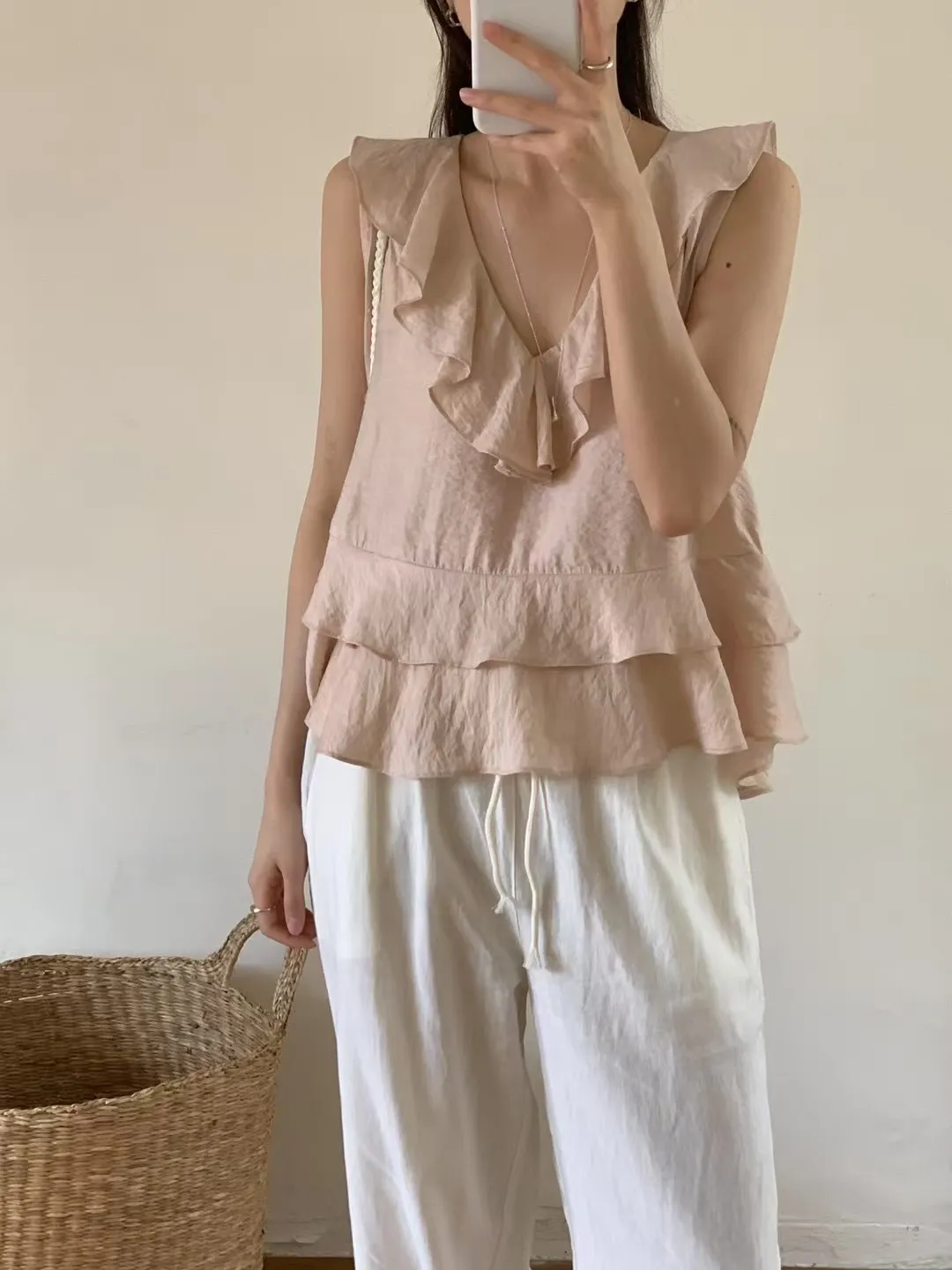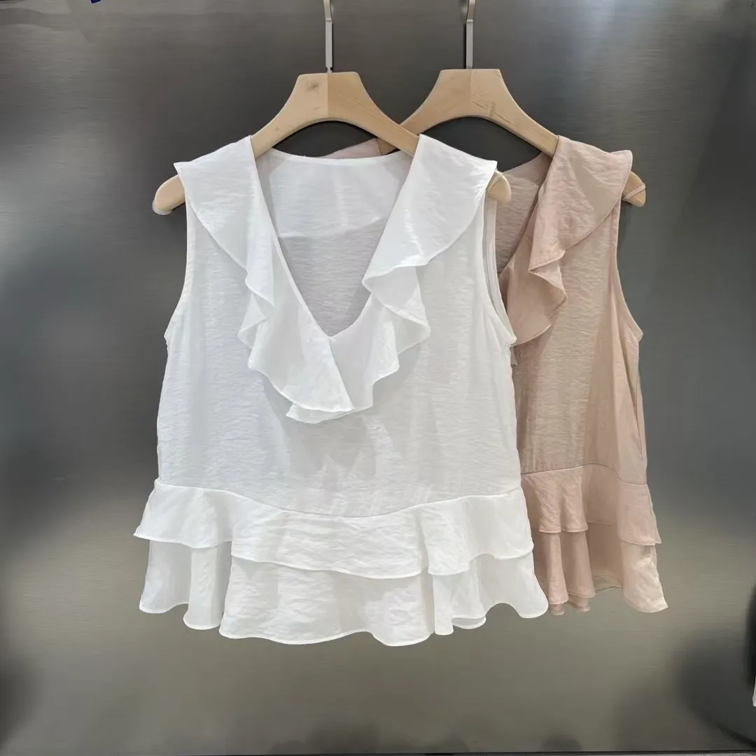 A18 0629(限量特)氣質V領荷葉不規則下擺上衣2色