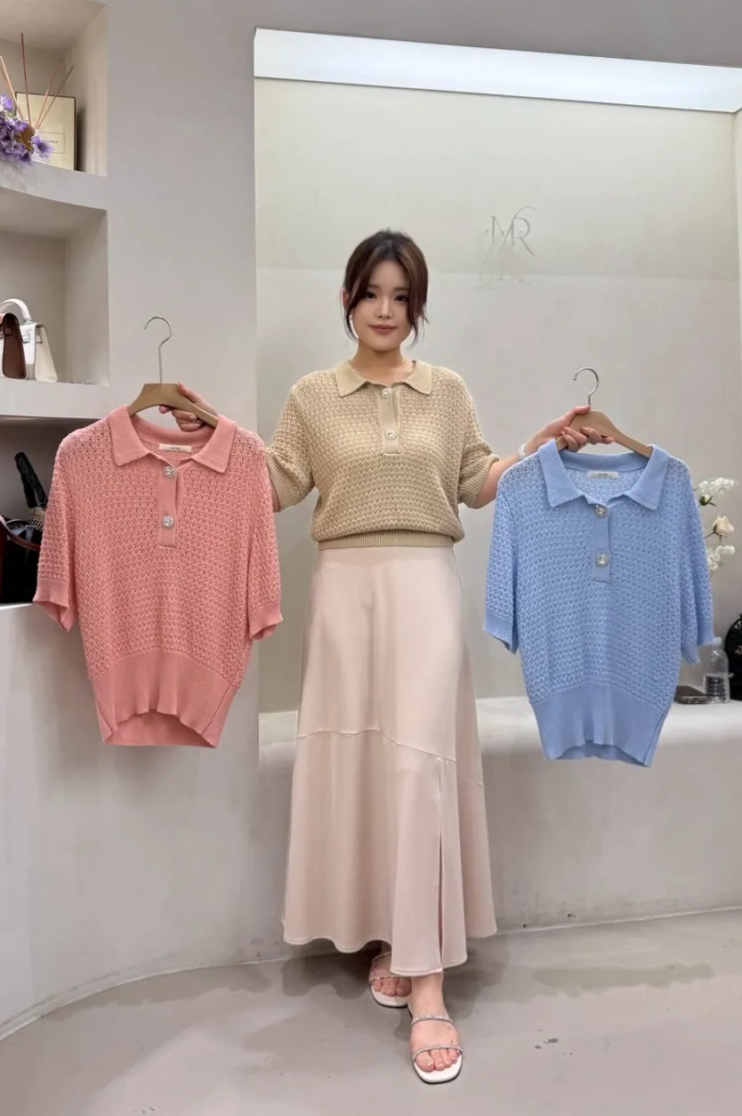 A17 0720(限量特)可愛歐膩家雙釦翻領天絲針織上衣