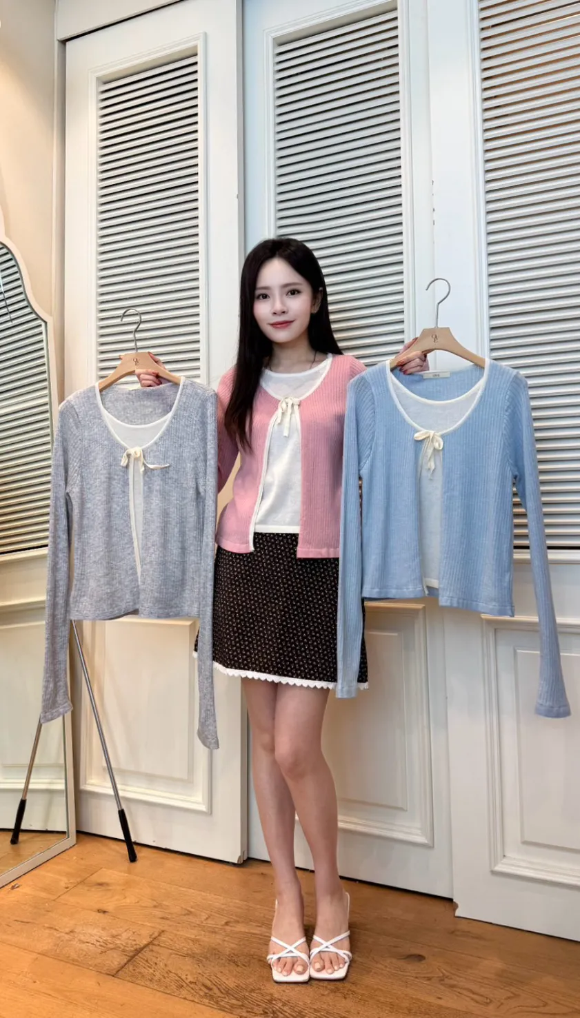 A50 0730(限量特)浪漫洋裝家綁帶撞色圓領棉質針織上衣
