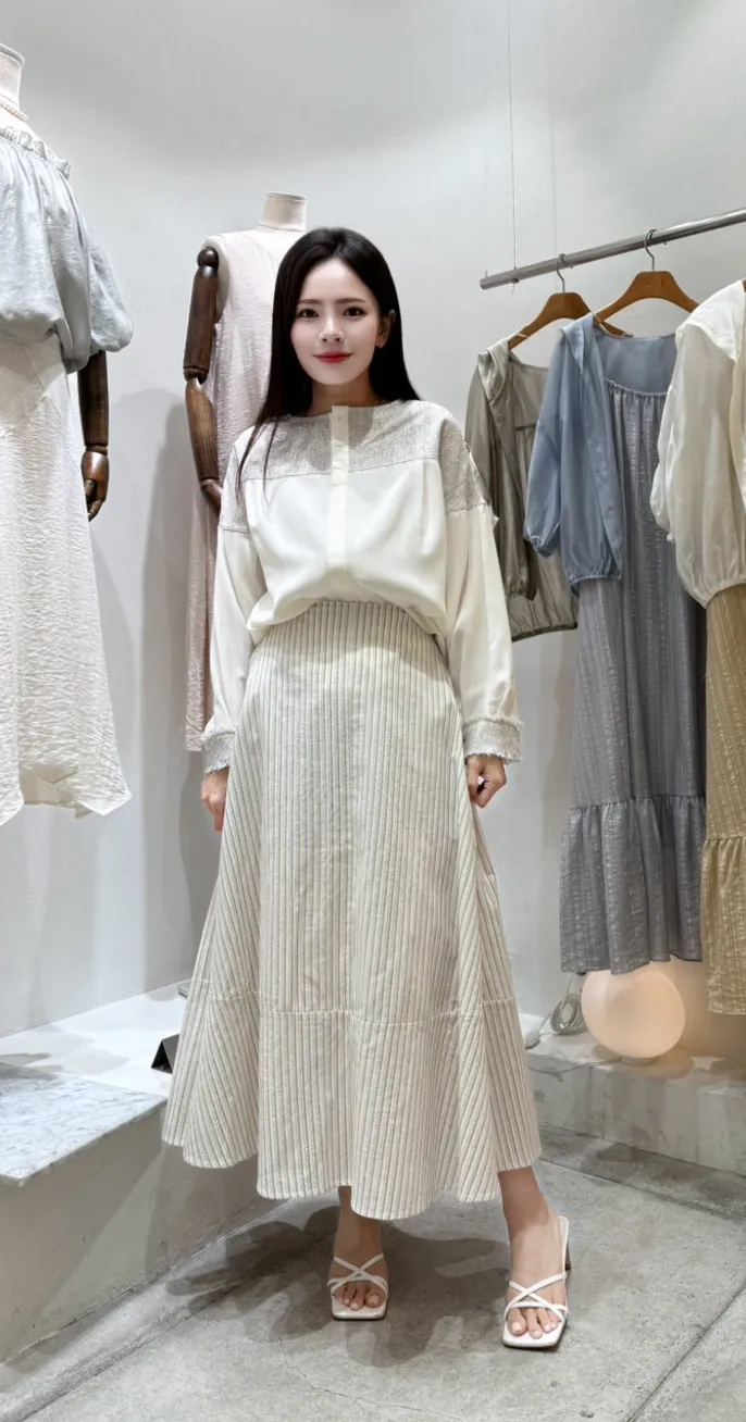 A18 0731(限量特)高檔天絲家細直紋A字麻料半裙