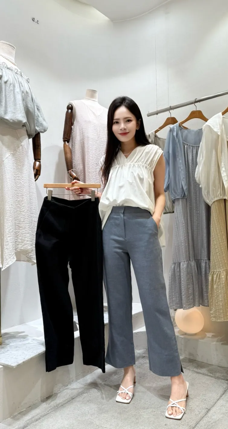 A25 0731(限量特)高檔天絲家側開衩九分棉麻西裝褲