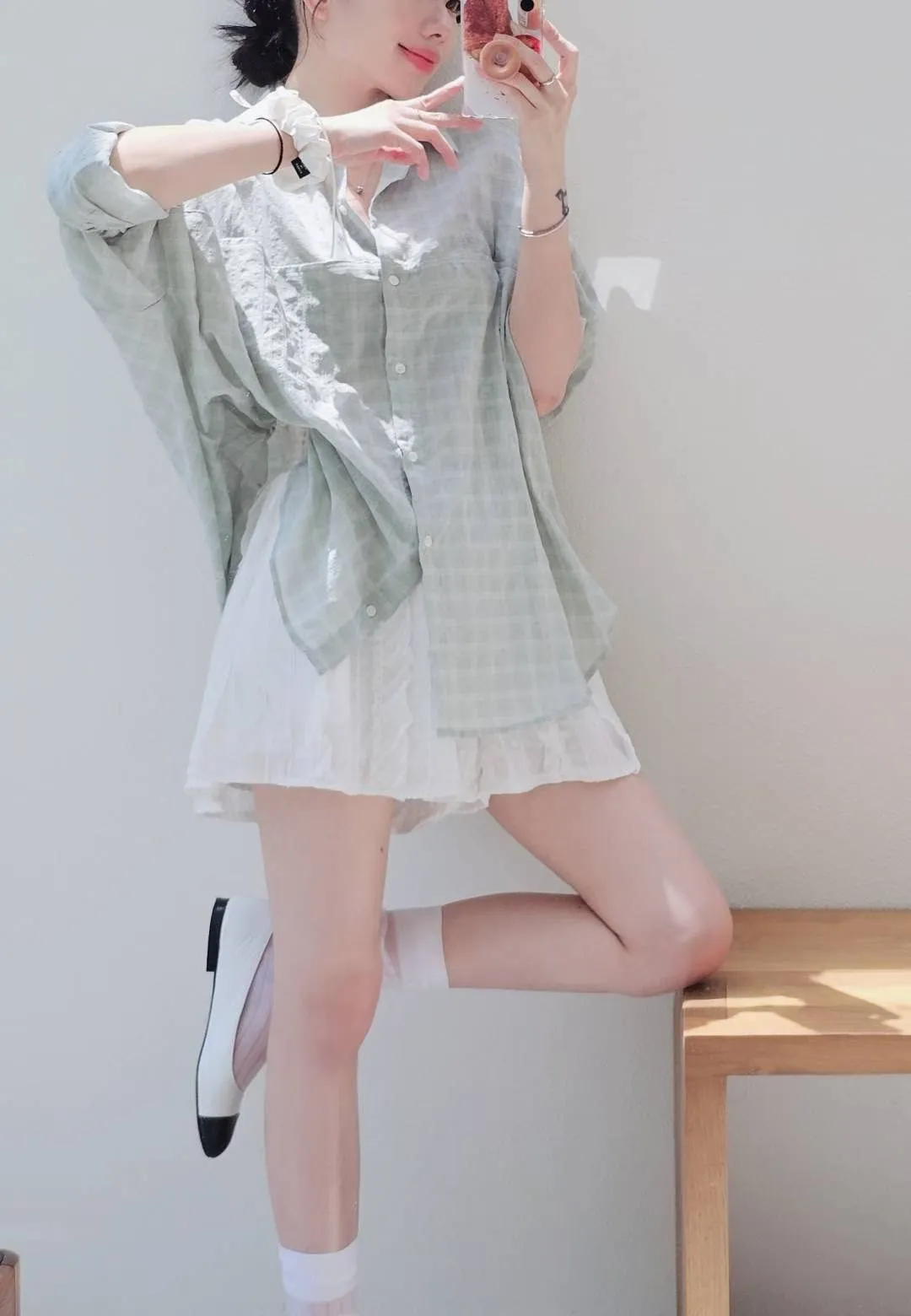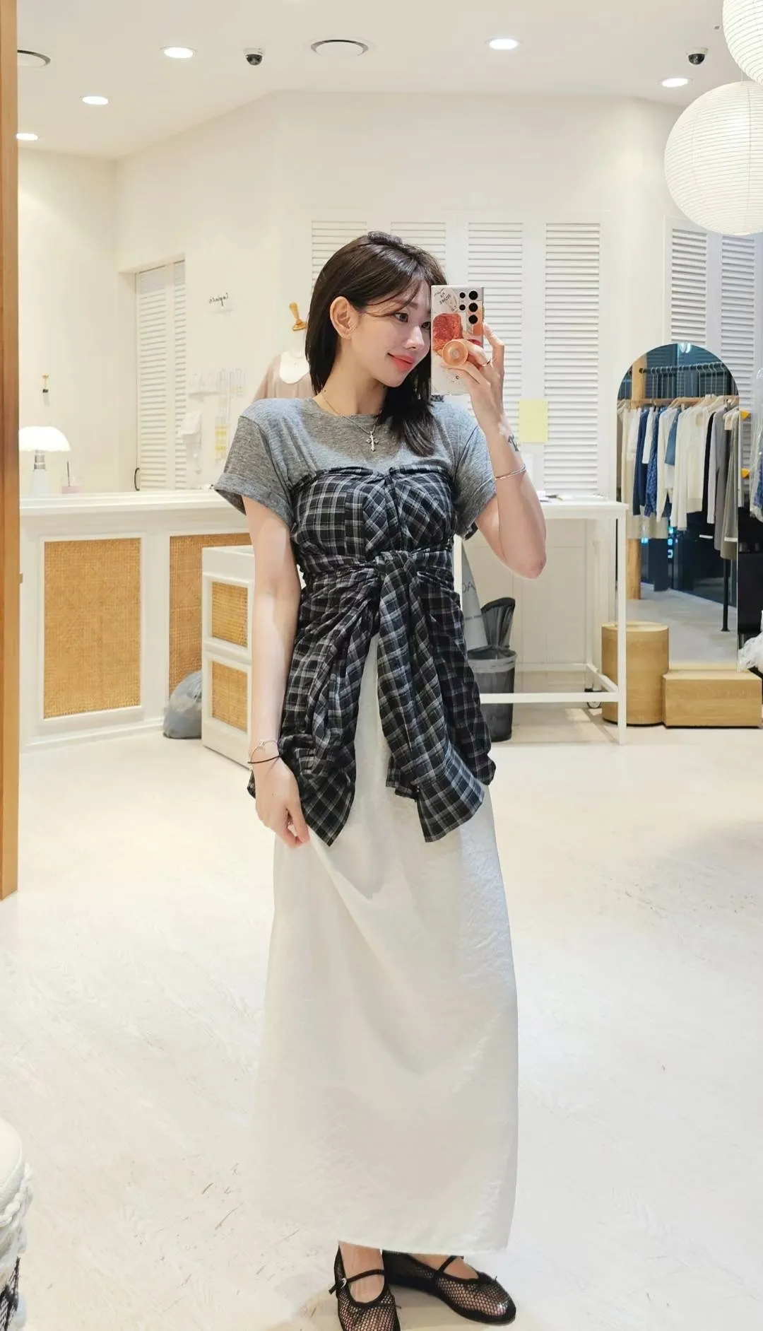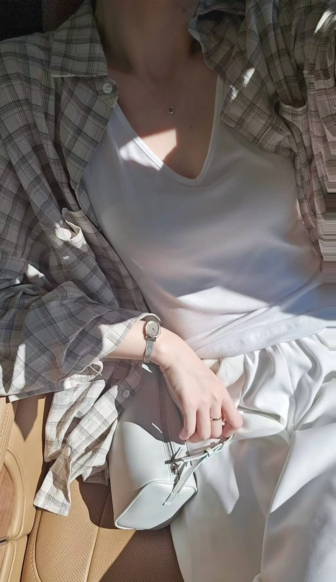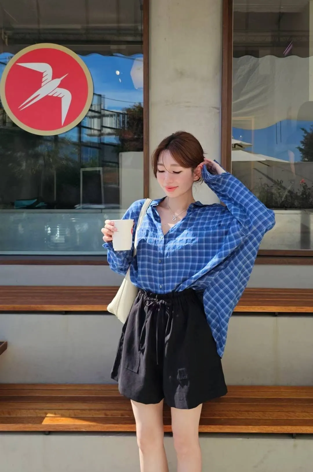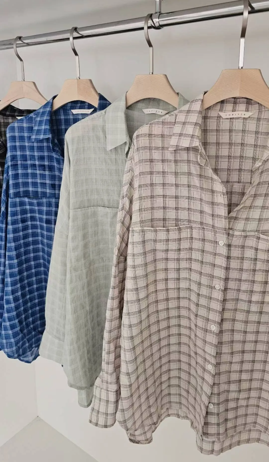 E28漂亮歐膩經典百搭格紋休閒襯衫