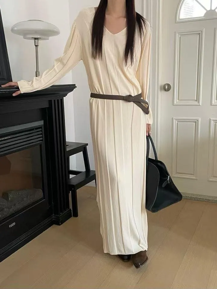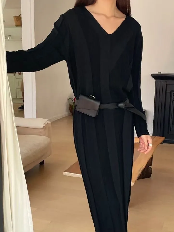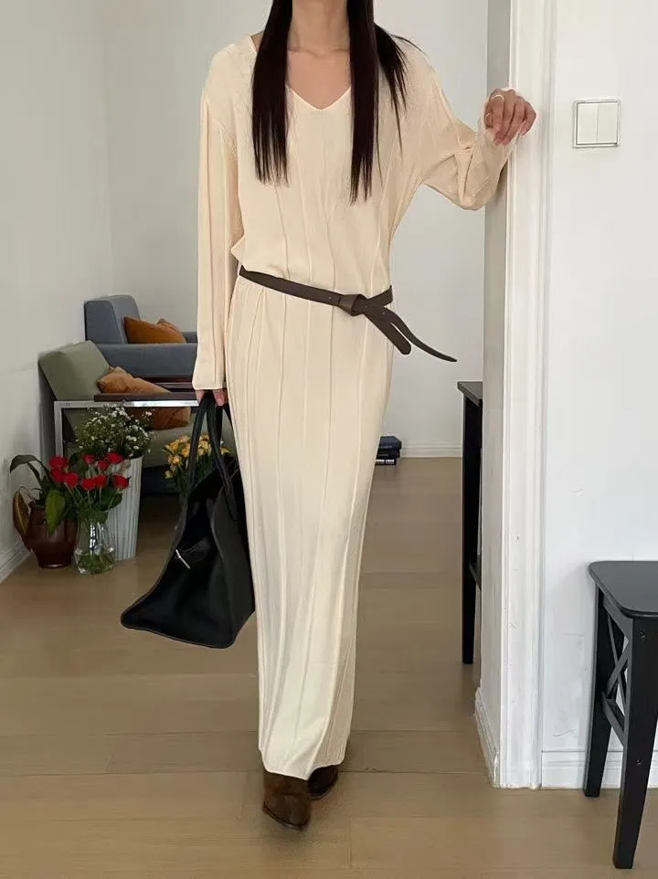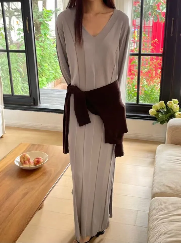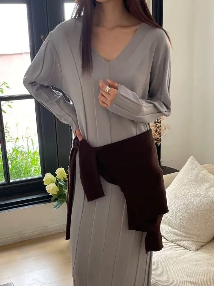 B122(限量特)高檔櫃直紋針織V領長袖洋裝