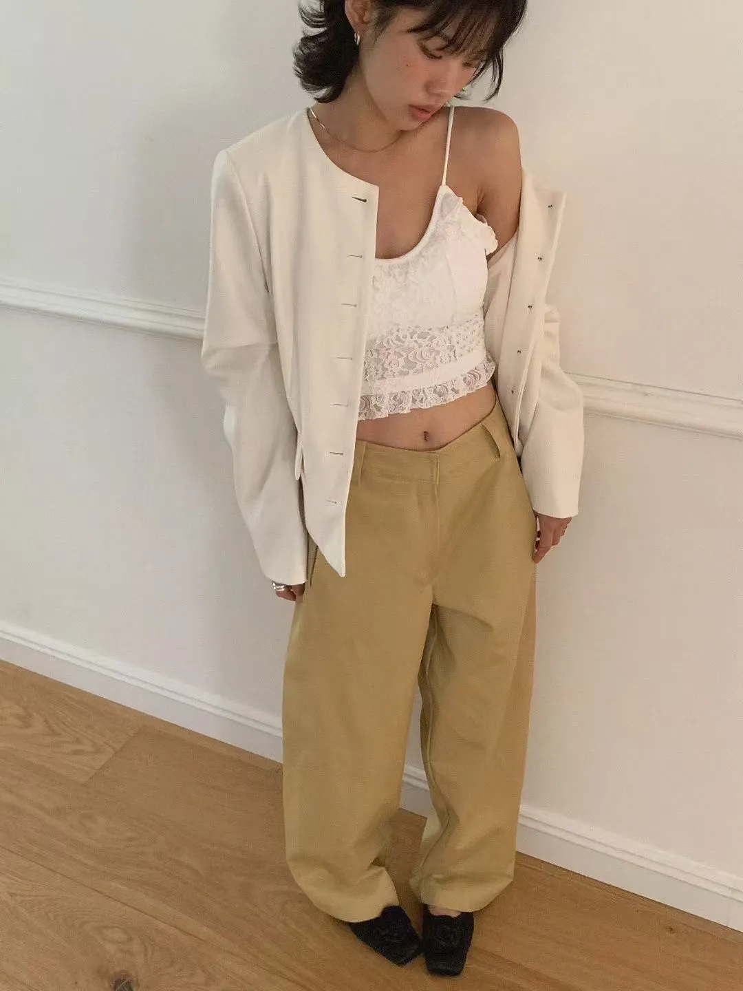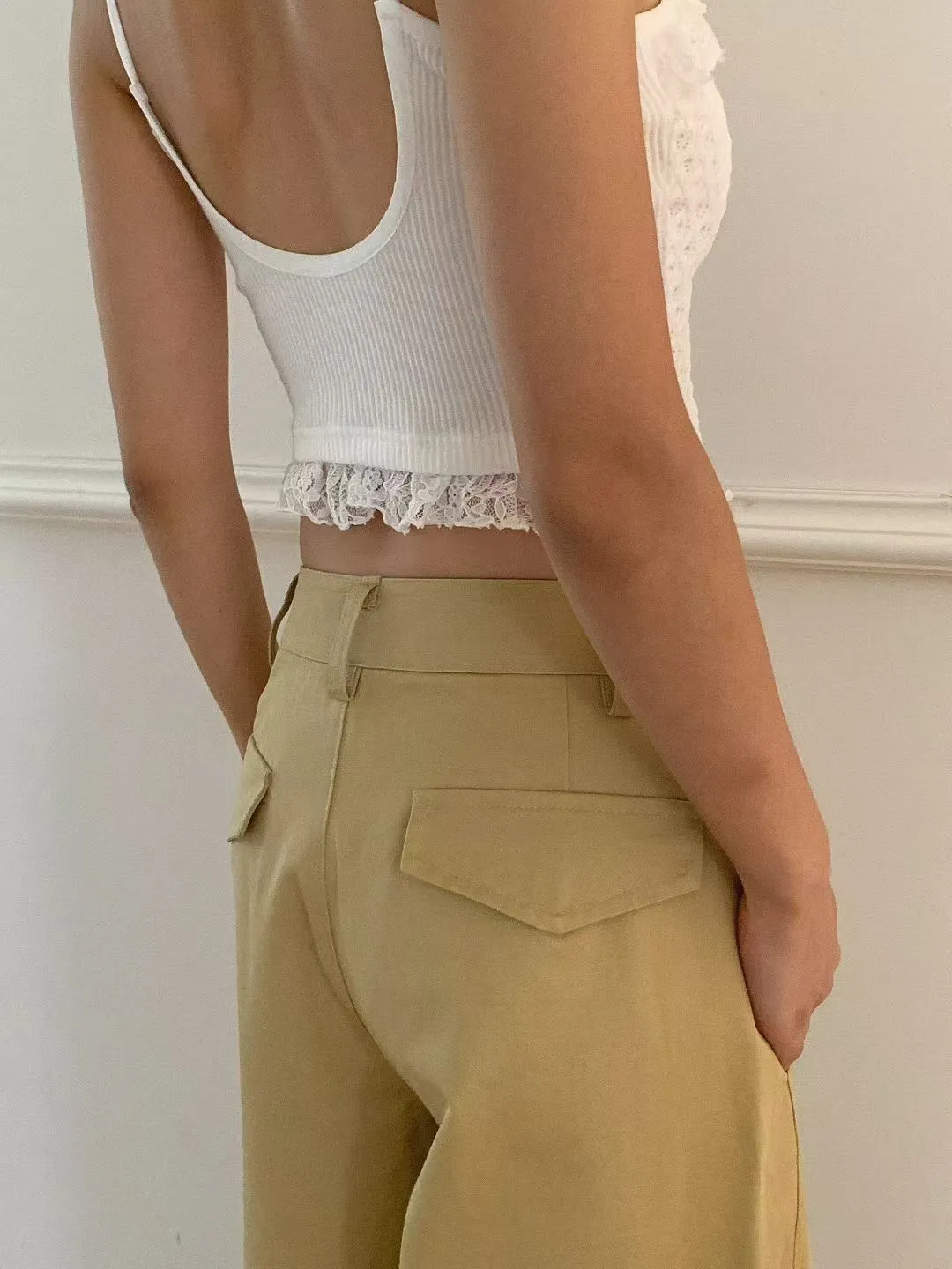 A56 0901素希歐膩家拼接蕾絲細肩帶大U領BRA TOP
