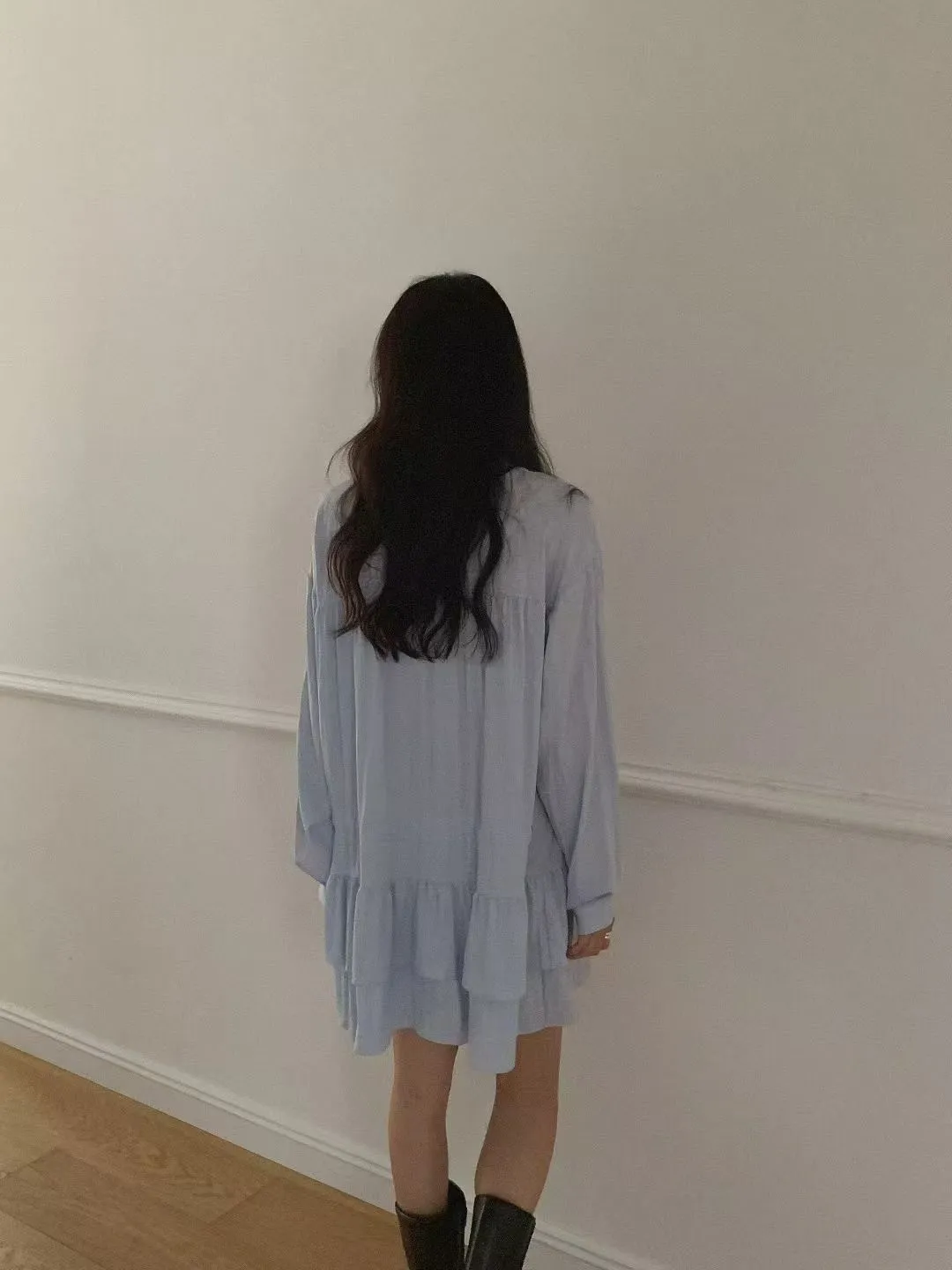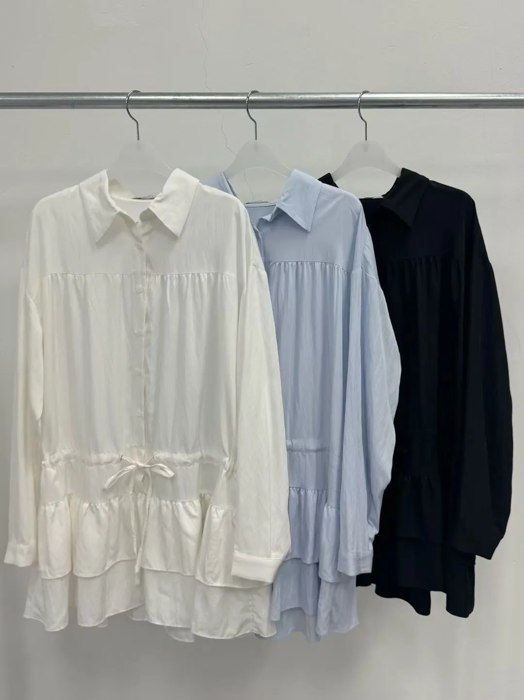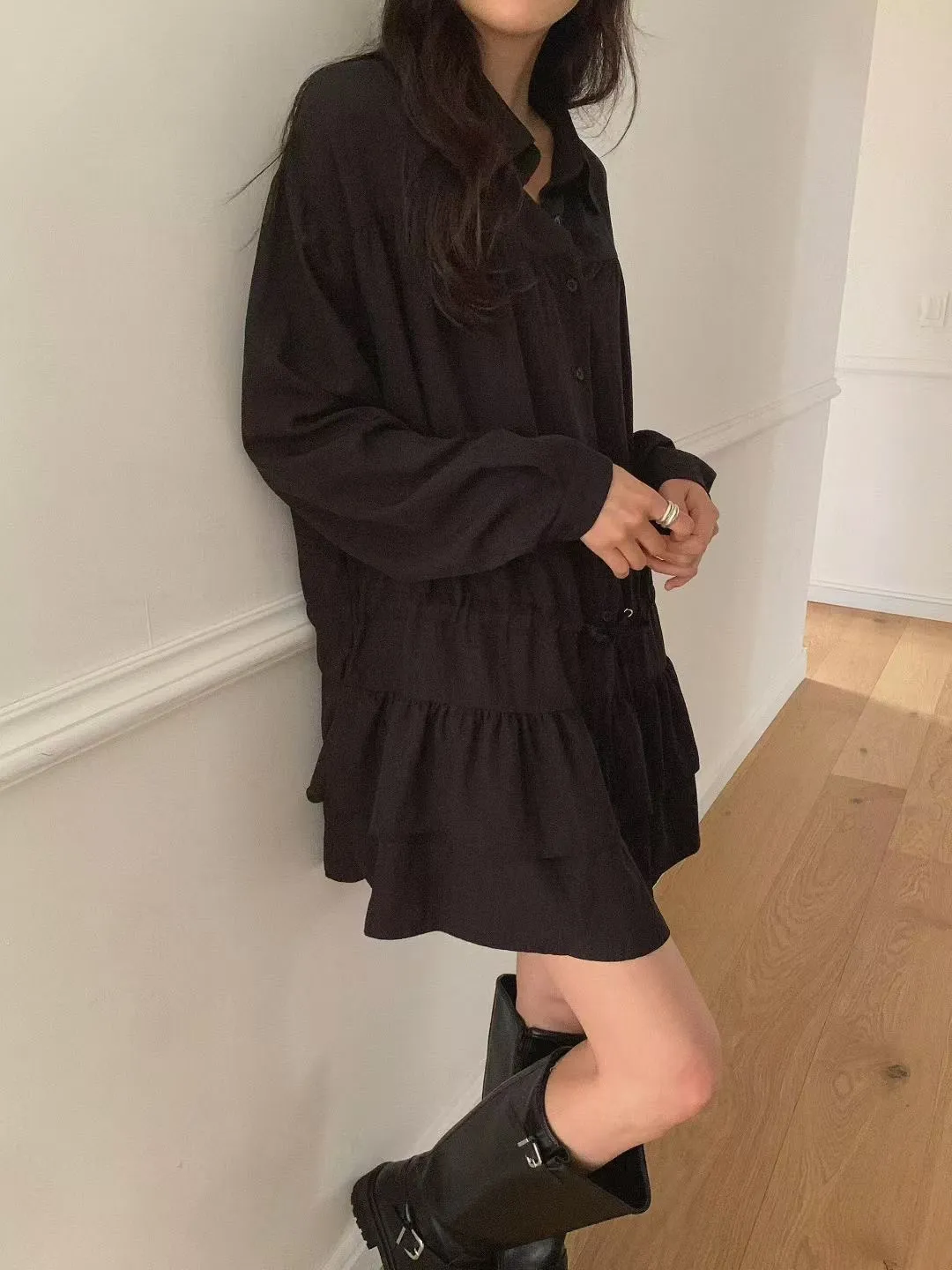 A60 0901素希歐膩家抽繩綁帶排釦翻領蛋糕裙襯衫洋裝