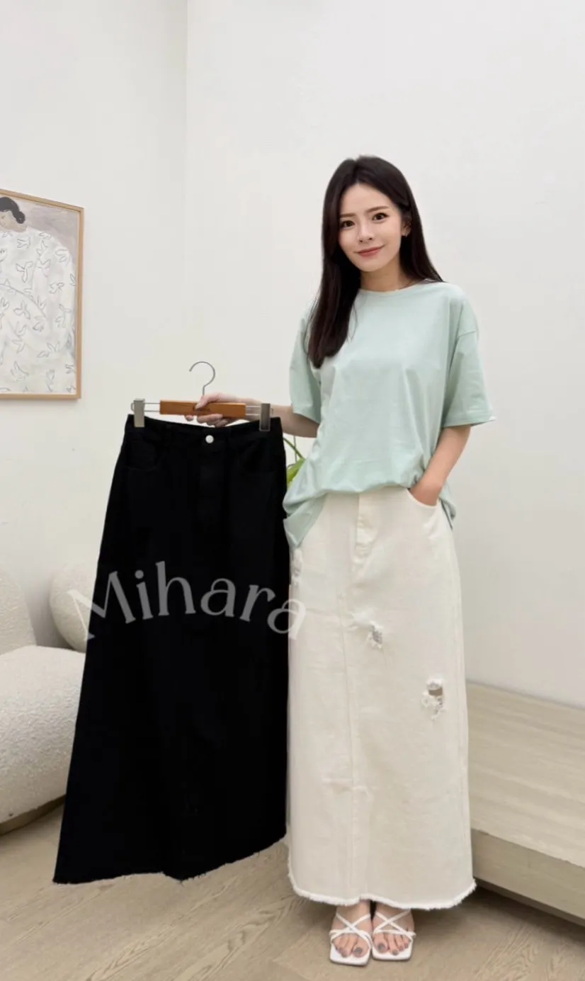 A70 0901(限量特)高檔家後開衩抓破牛仔半裙