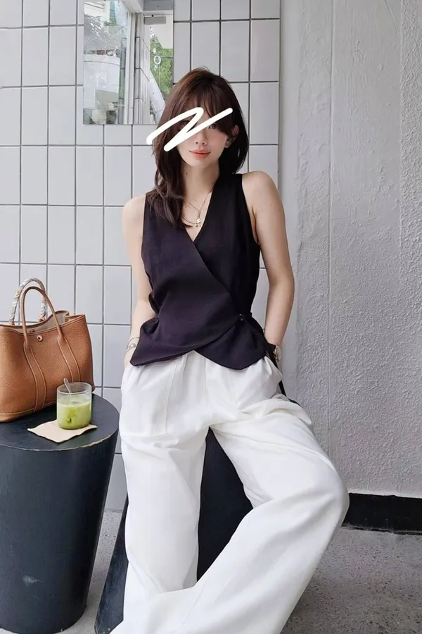 E309漂亮歐膩秋季時髦老錢大口袋長褲