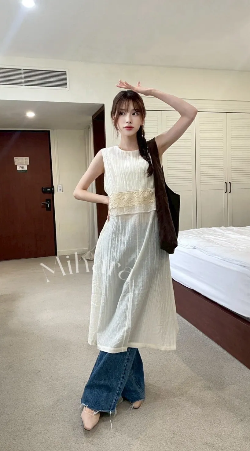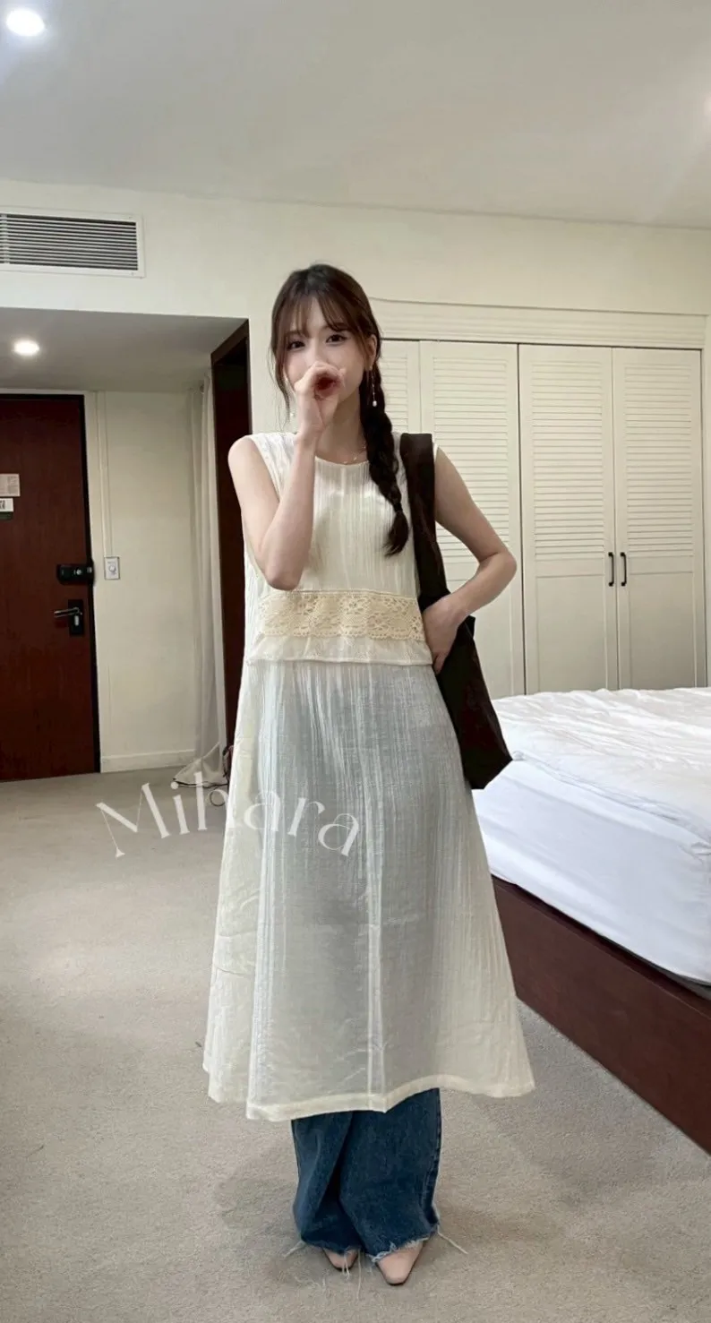 A28 0914高檔設計棟蕾絲罩衫洋裝