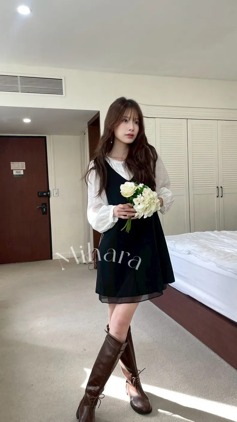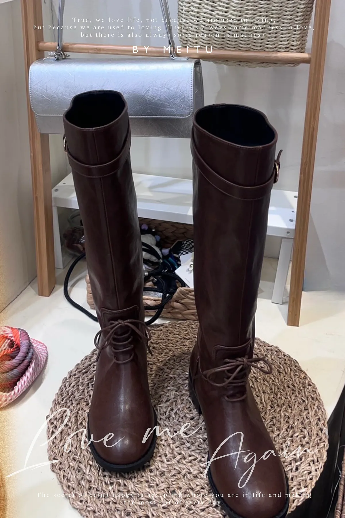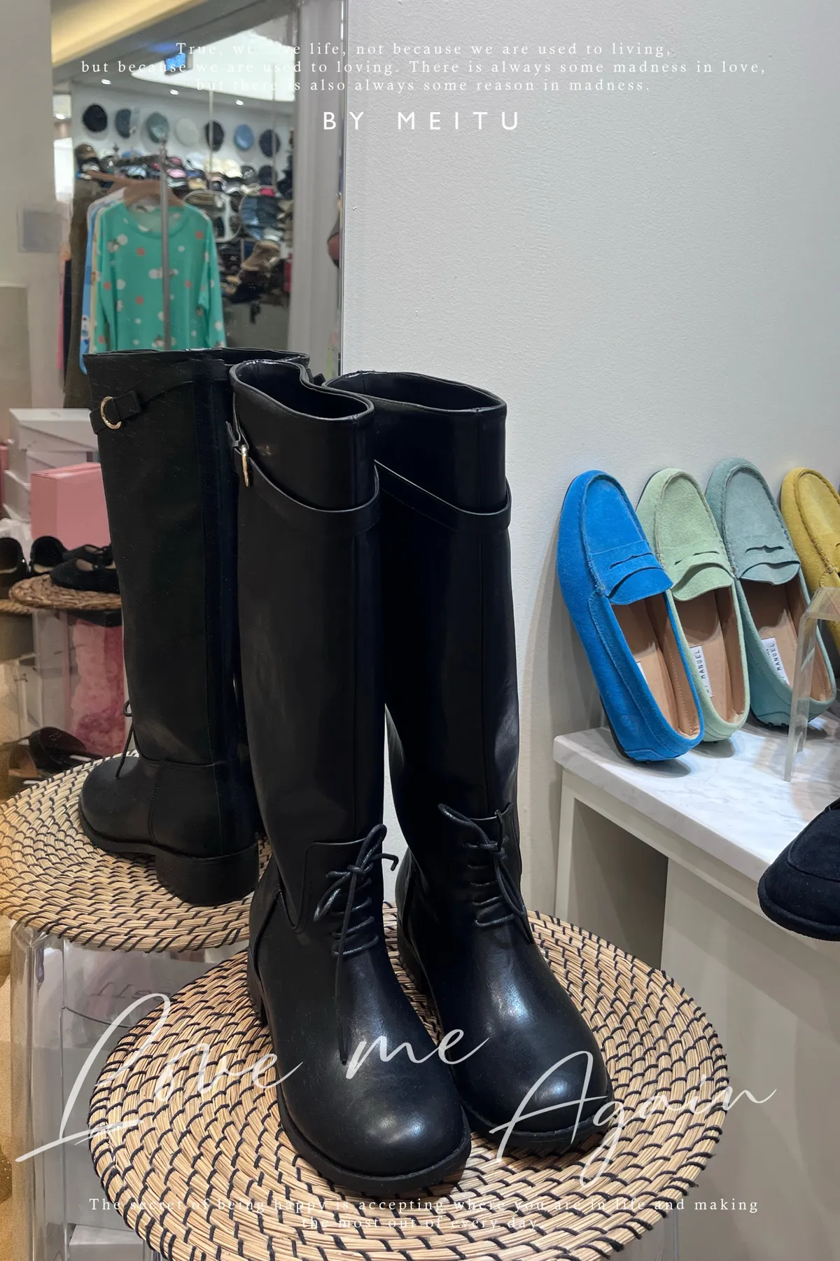 A6 1012 0921(必買)設計感綁帶設計長靴(225-250)2色