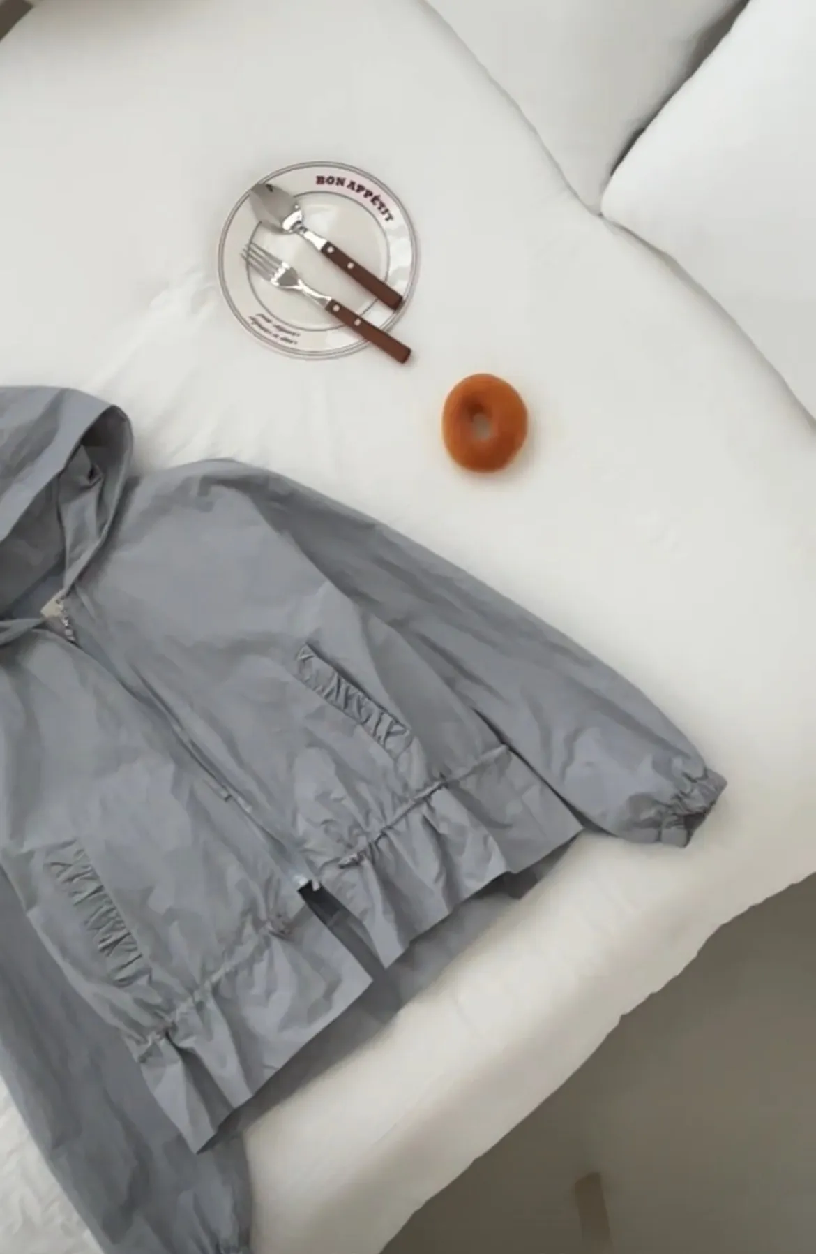 A9 0914(必買)高檔櫃質感連帽口袋抽繩荷葉下擺外套3色