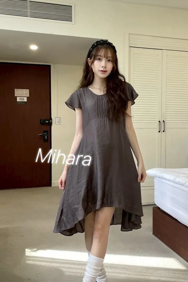 A1 0921優雅前壓褶設計不歸則剪裁下擺傘狀洋裝