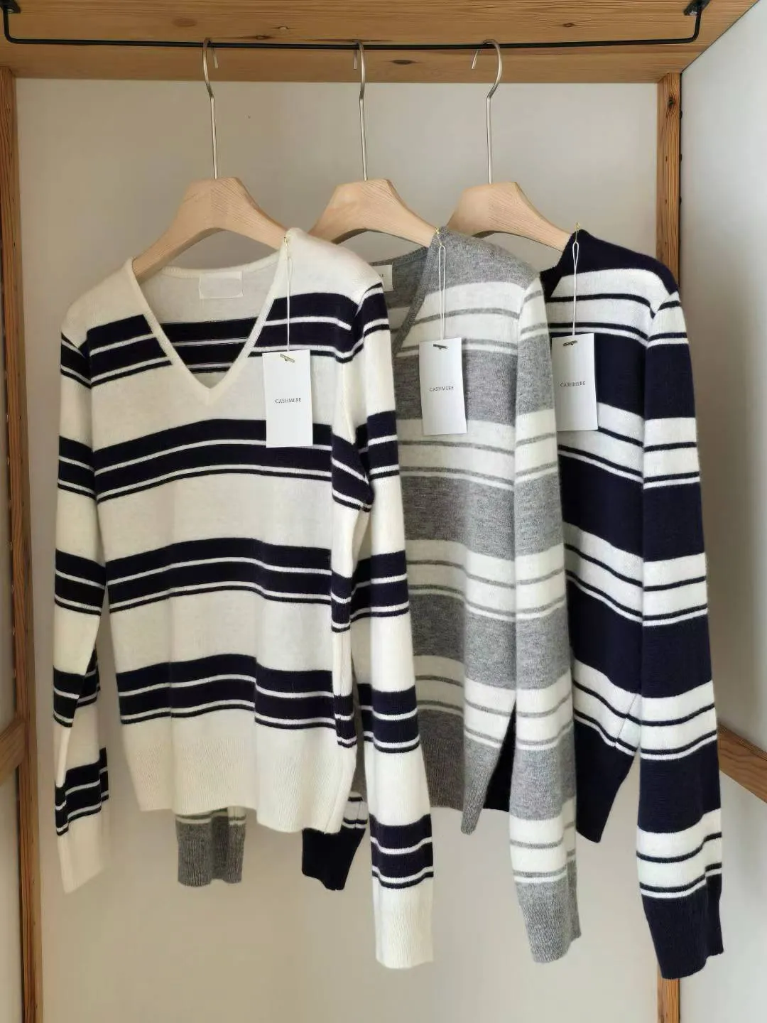 A30 0921(限量特)休閒V領條紋針織上衣3色