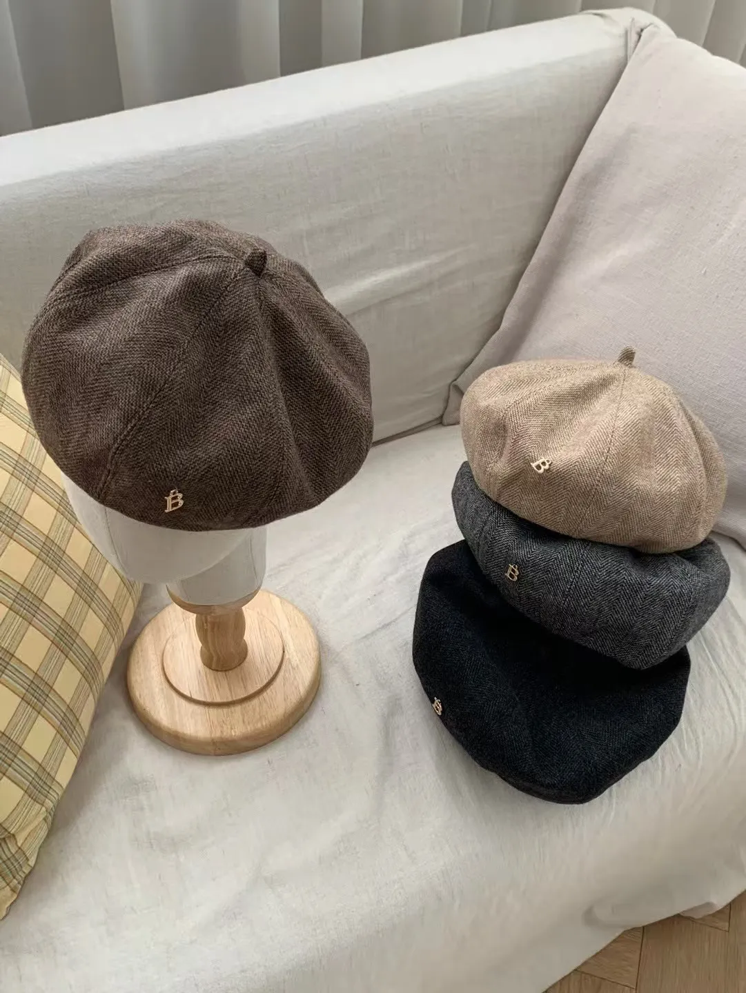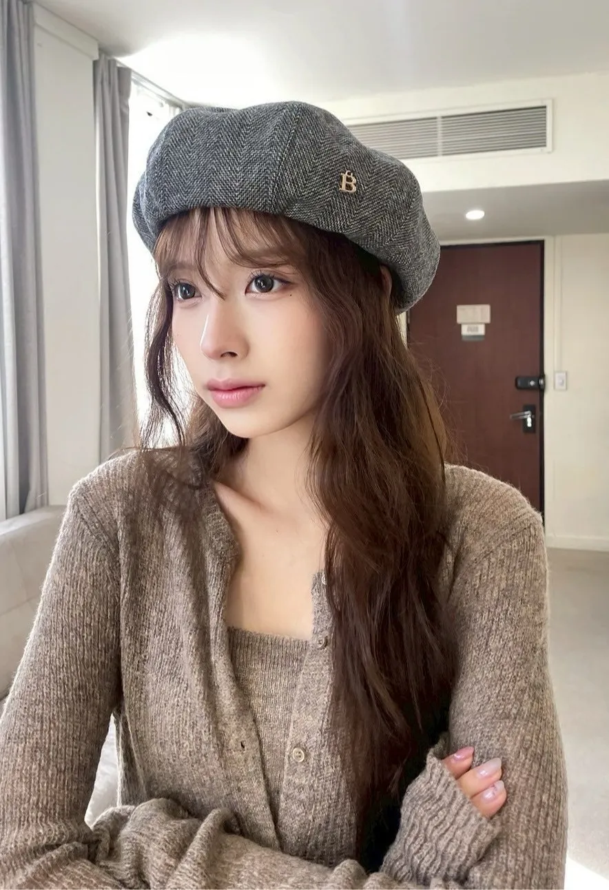 A7 1012(限量特)超美小千鳥織紋畫家貝蕾帽4色