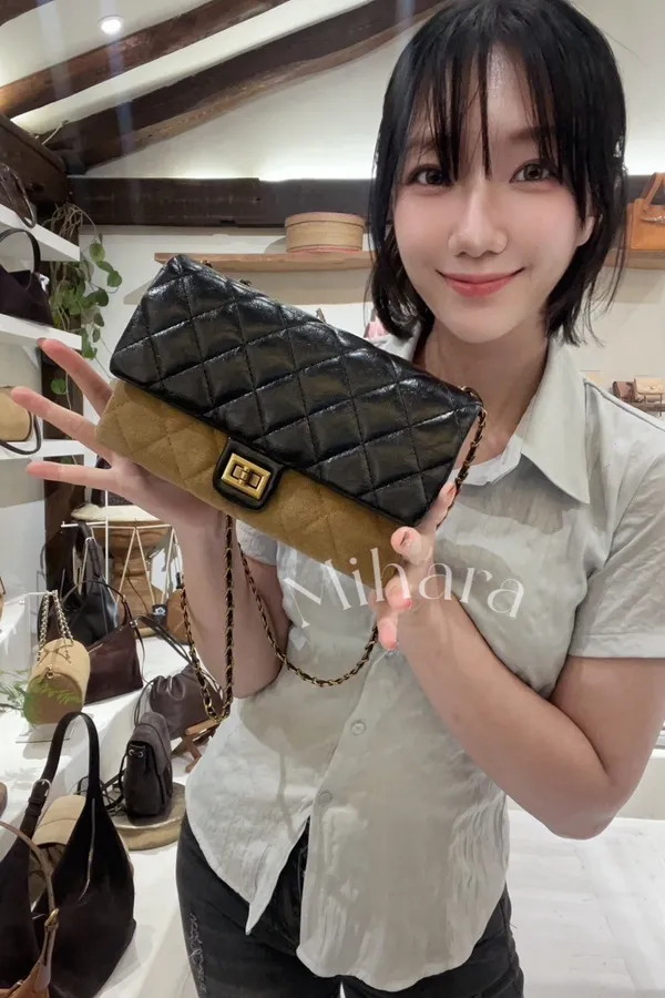 A5 0922高檔真皮包家菱格紋麂皮小香方包