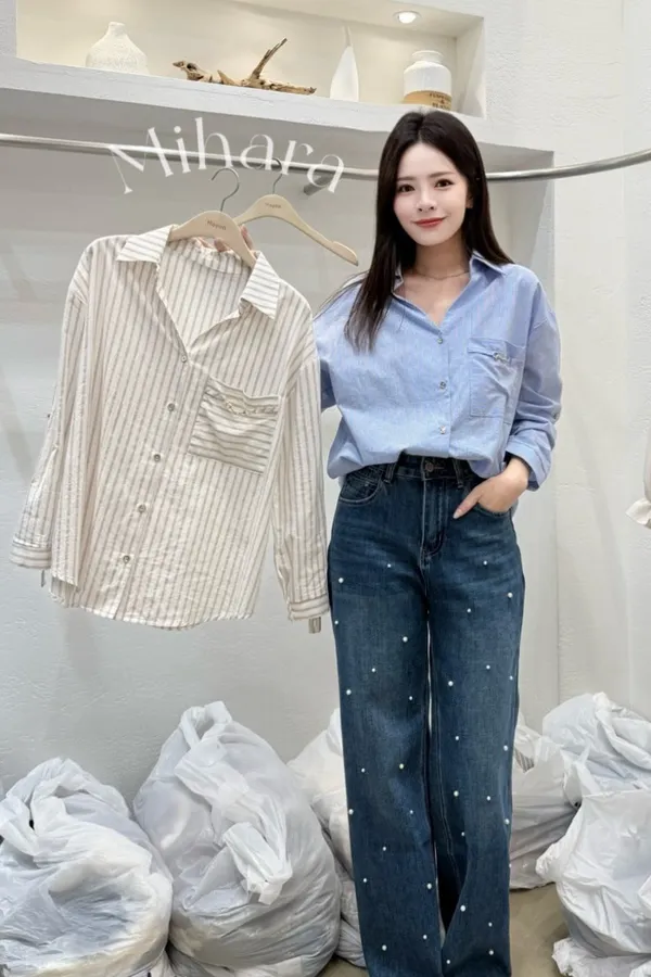 A12 0928珍珠釘釦牛仔褲(S-XL)