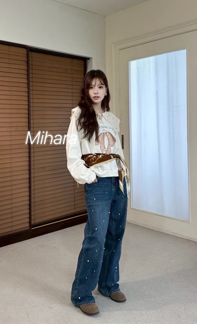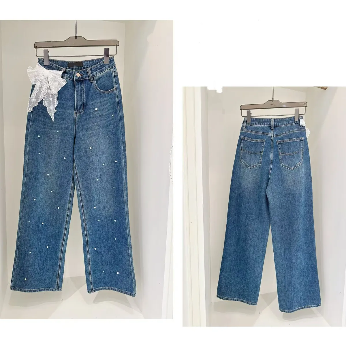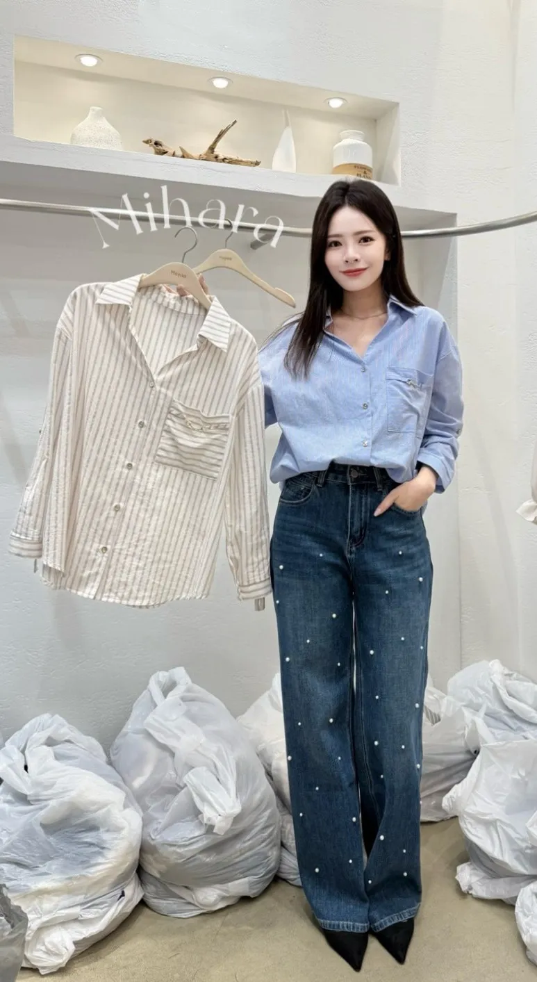 A12 0928(限量特)珍珠釘釦牛仔褲(S-XL)