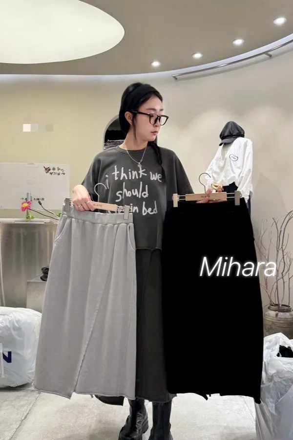 A24 0928休閒長腿歐膩家前開衩棉質半裙