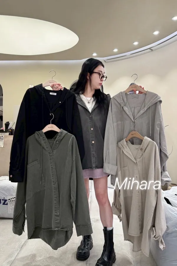 A28 0928休閒長腿歐膩家排釦連帽水洗棉質外套