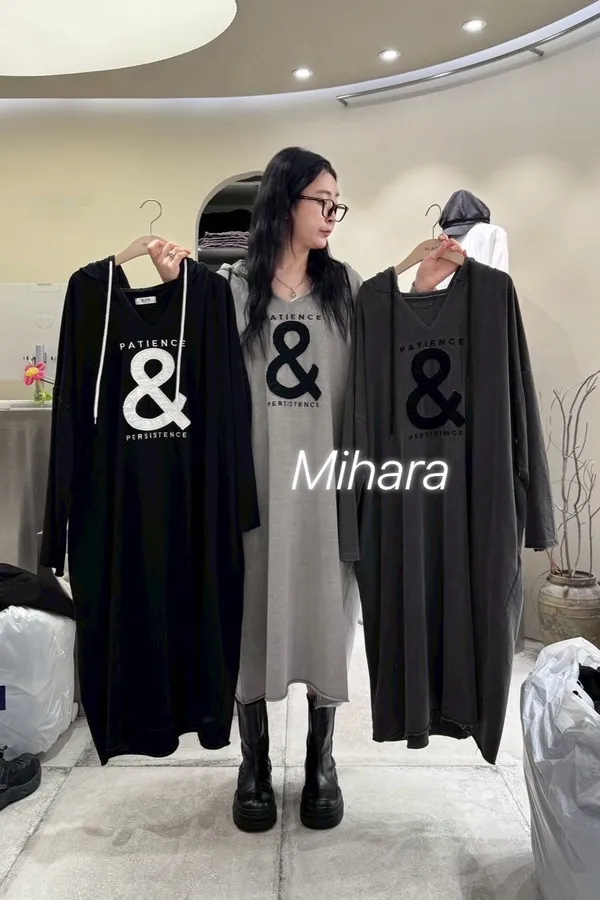A36 0928休閒長腿歐膩家英文字母V領連帽棉質洋裝