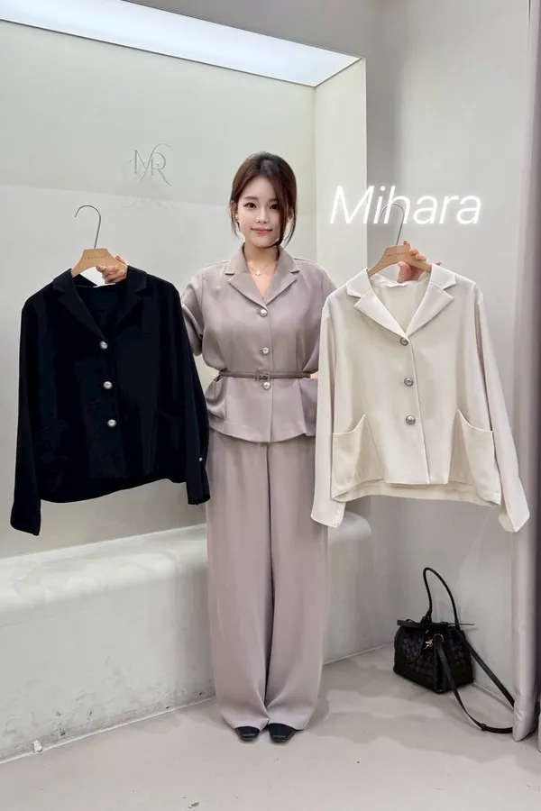 A37 0928可愛歐膩家排釦翻領V領西裝雪紡外套