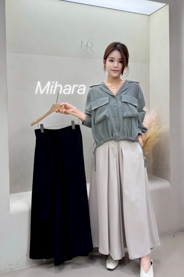 A52 0928可愛歐膩家立體打褶雪紡寬褲