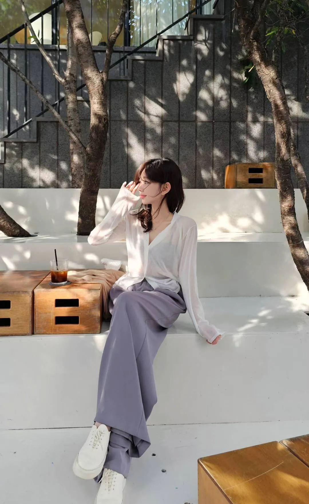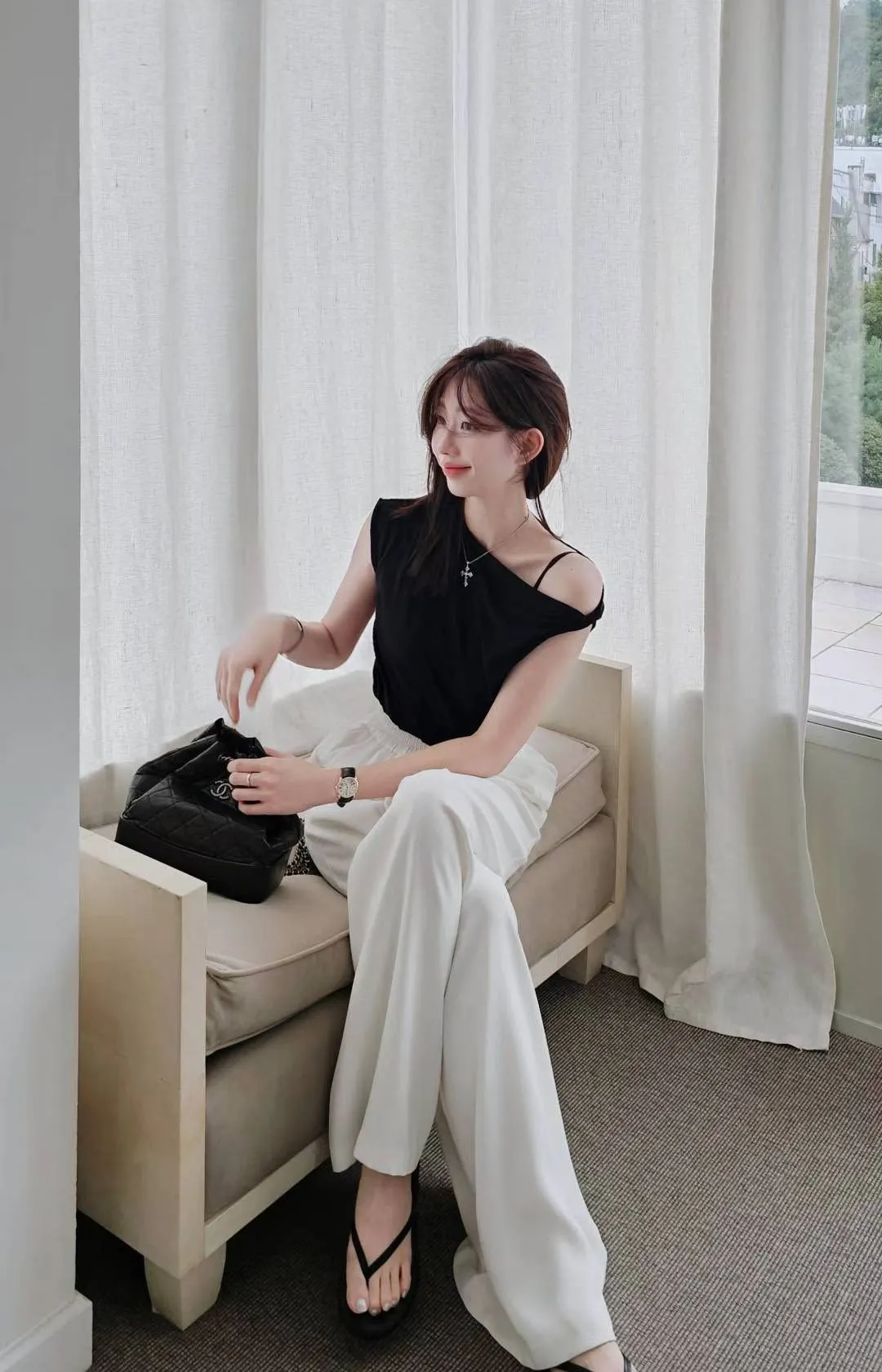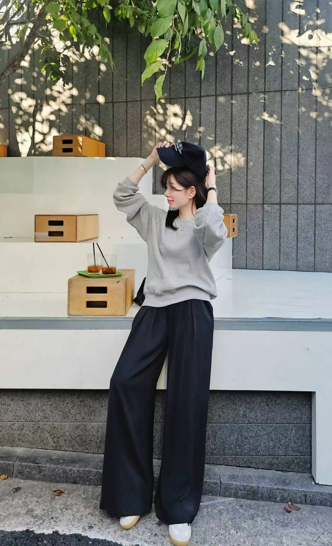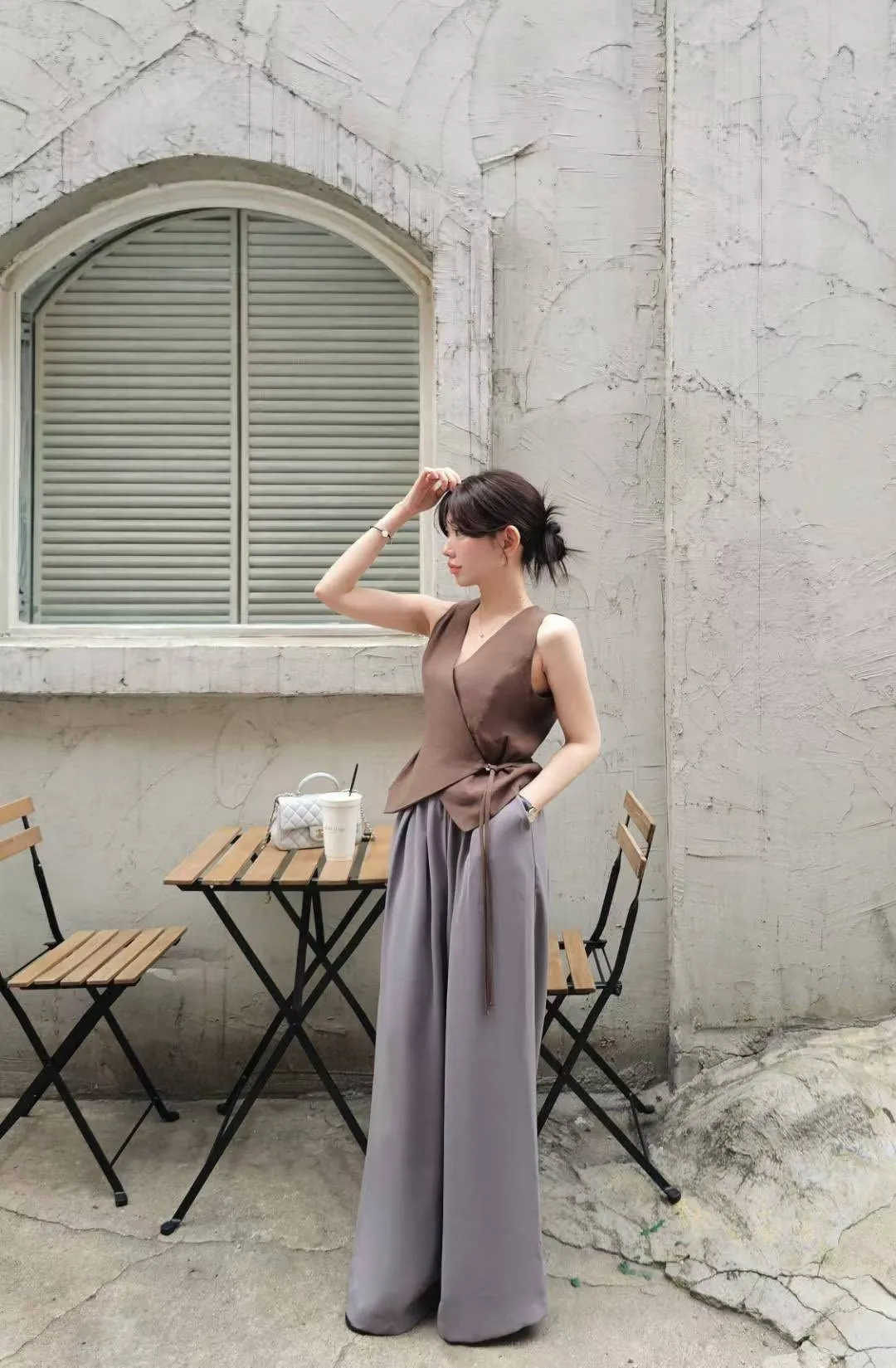 A6 1022漂亮歐膩法式鬆弛感闊腿西褲