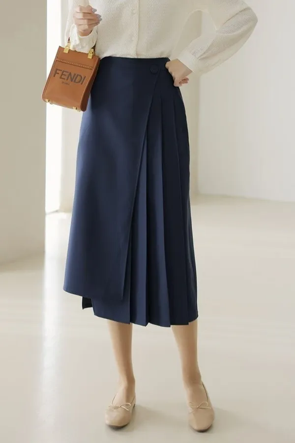B148氣質後要彈性側百褶裙
