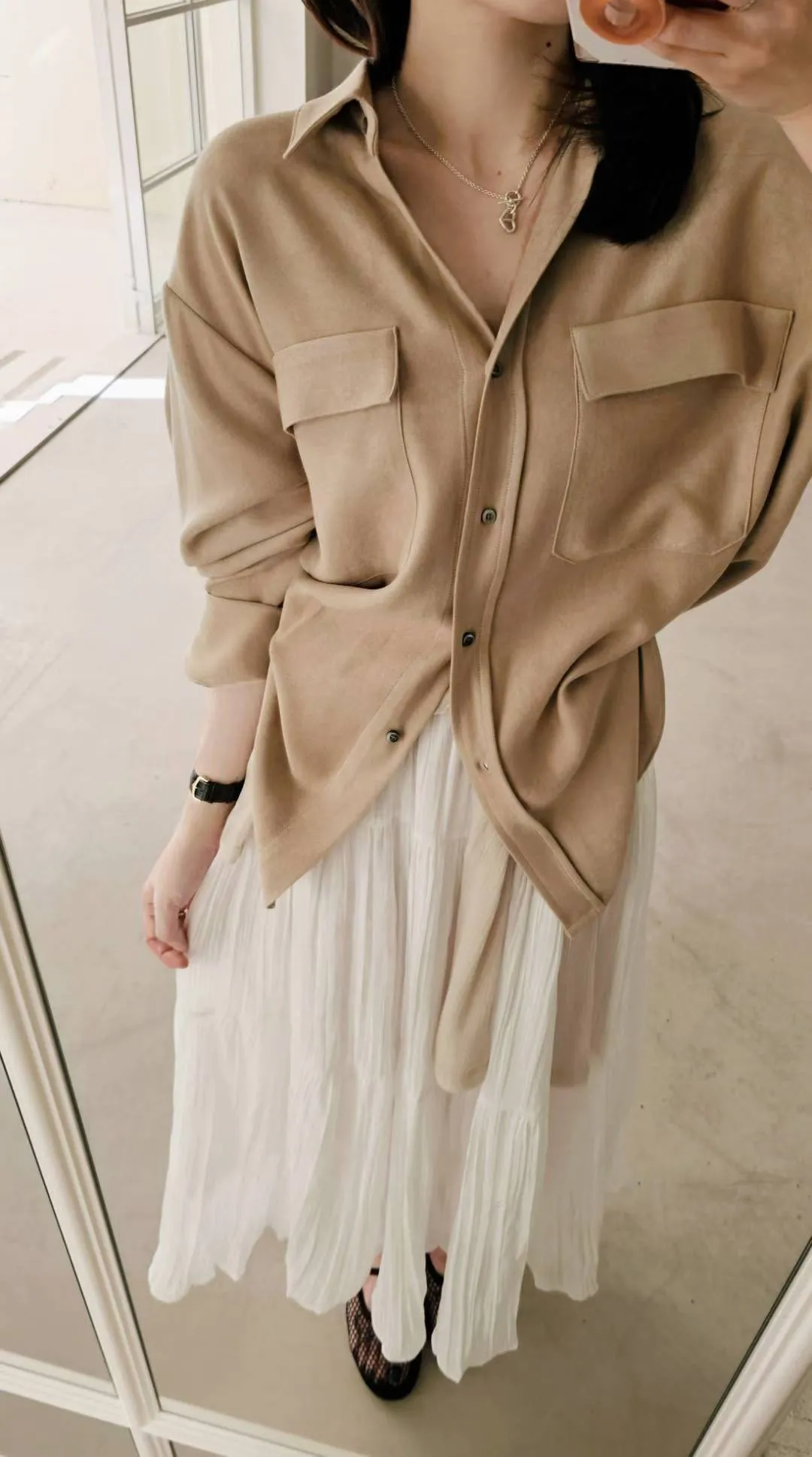 A7 1022漂亮歐膩仿麂皮細絨休閒襯衫