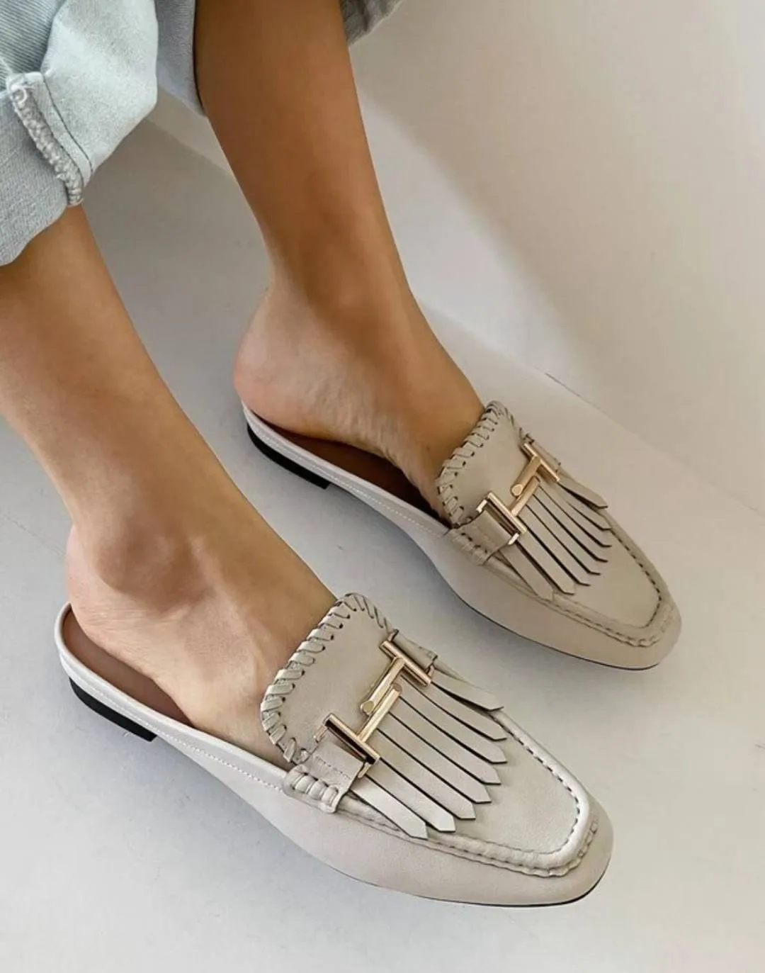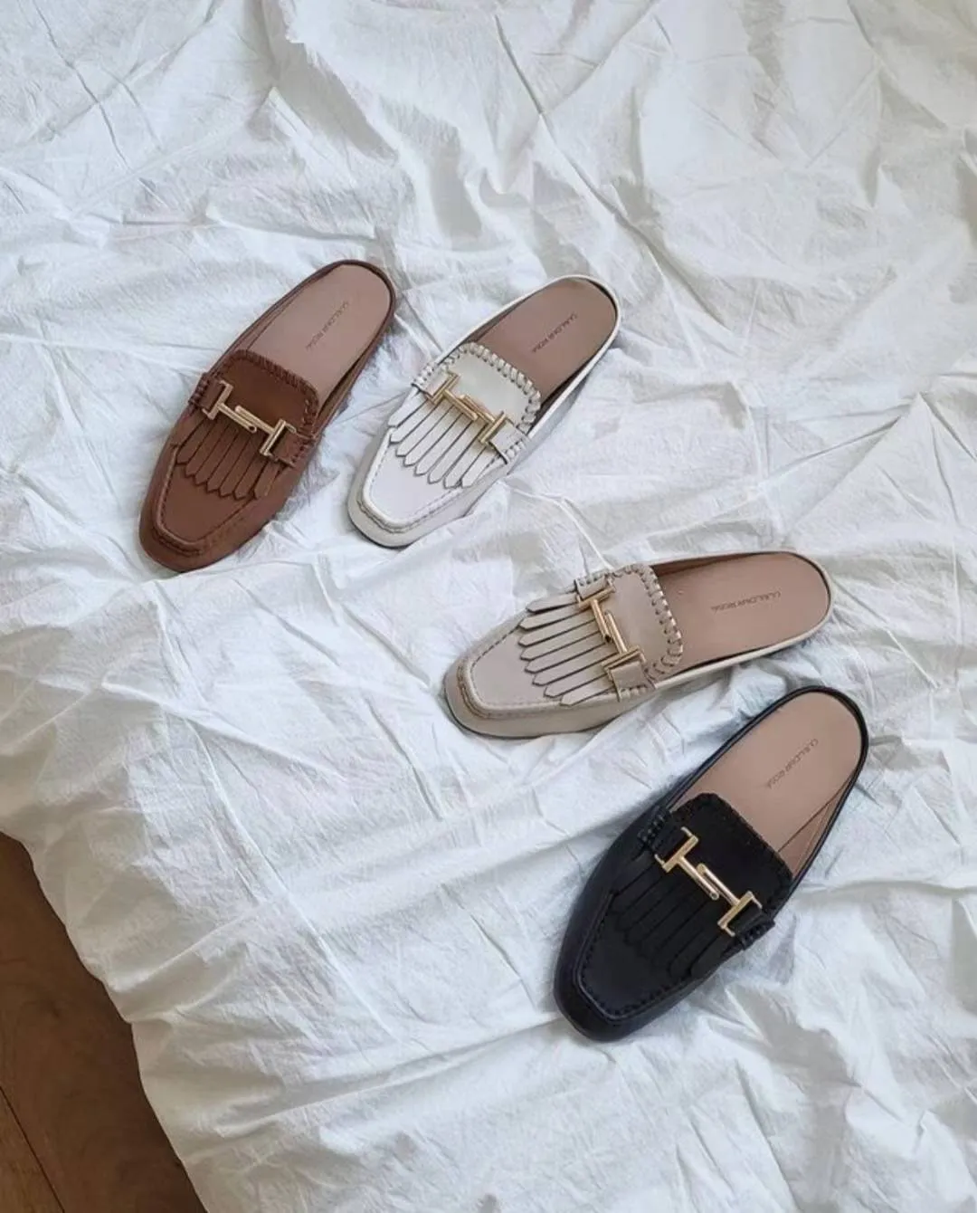 A3 1001真牛皮氣墊流蘇穆勒鞋1cm(230-255)4色