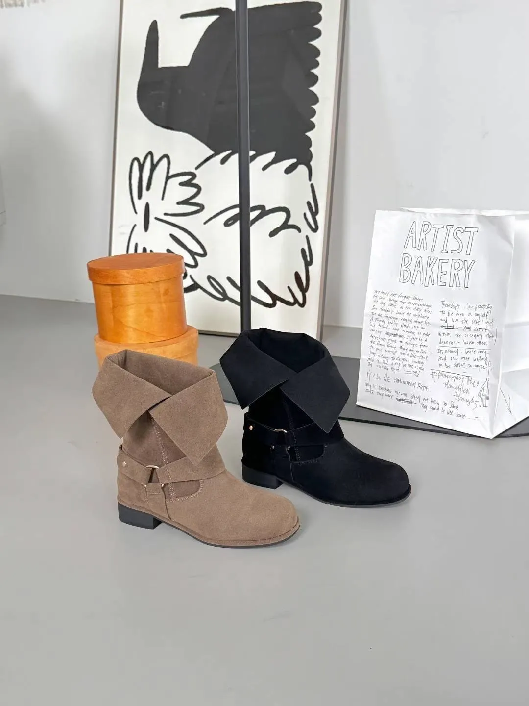 A6 1001琳琳側開衩麂皮中筒靴3cm(230-250)