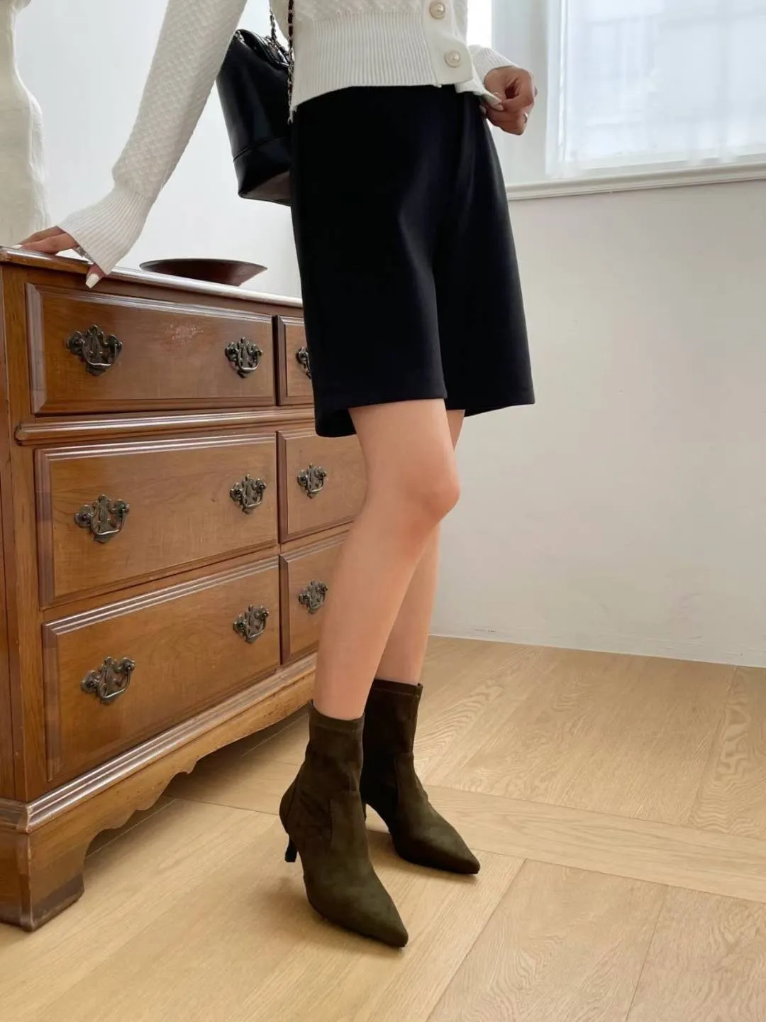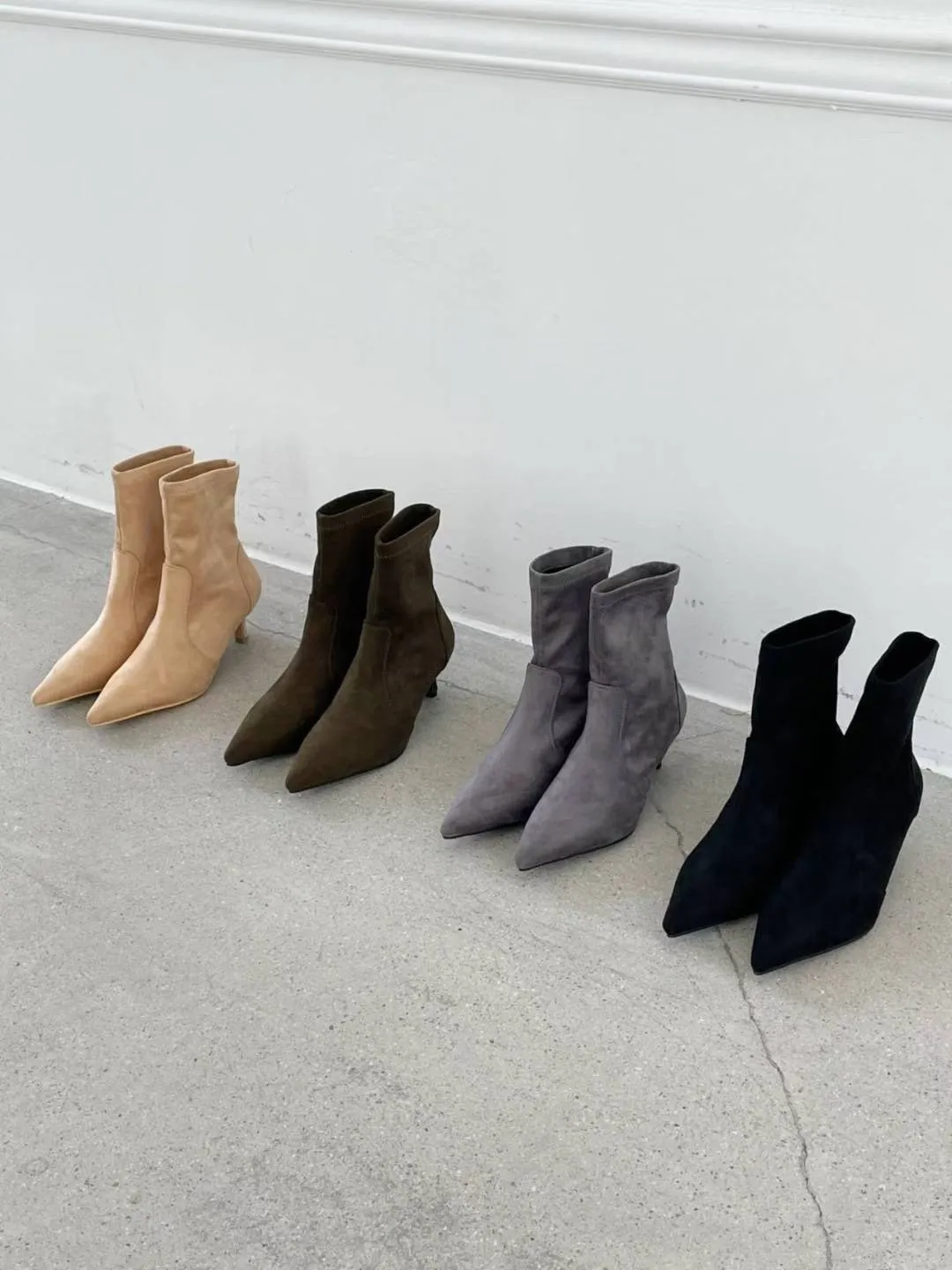 A10 1001尖頭細跟麂皮短靴5cm(225-250)