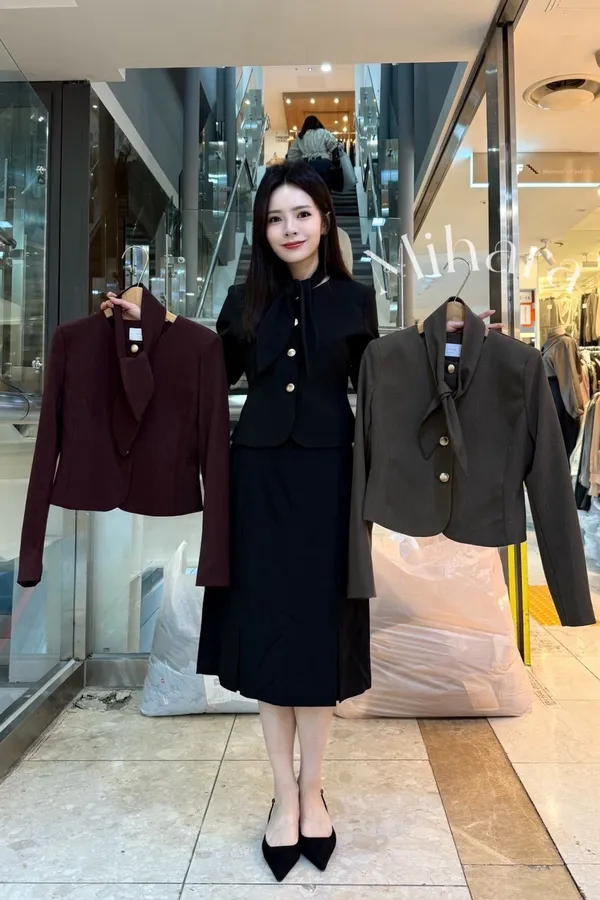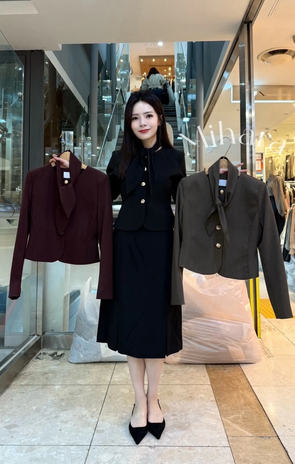 A34 1001名媛套裝家排釦圓領西裝外套附領巾