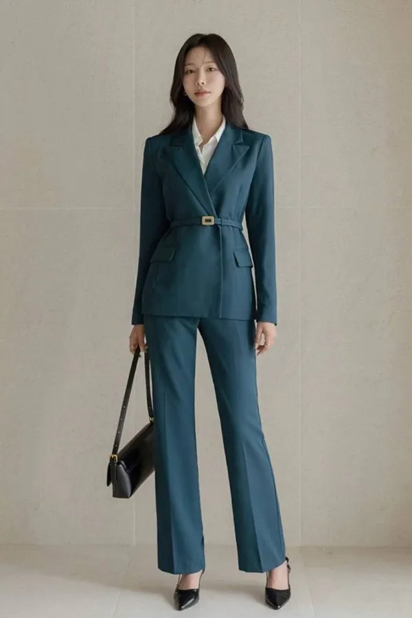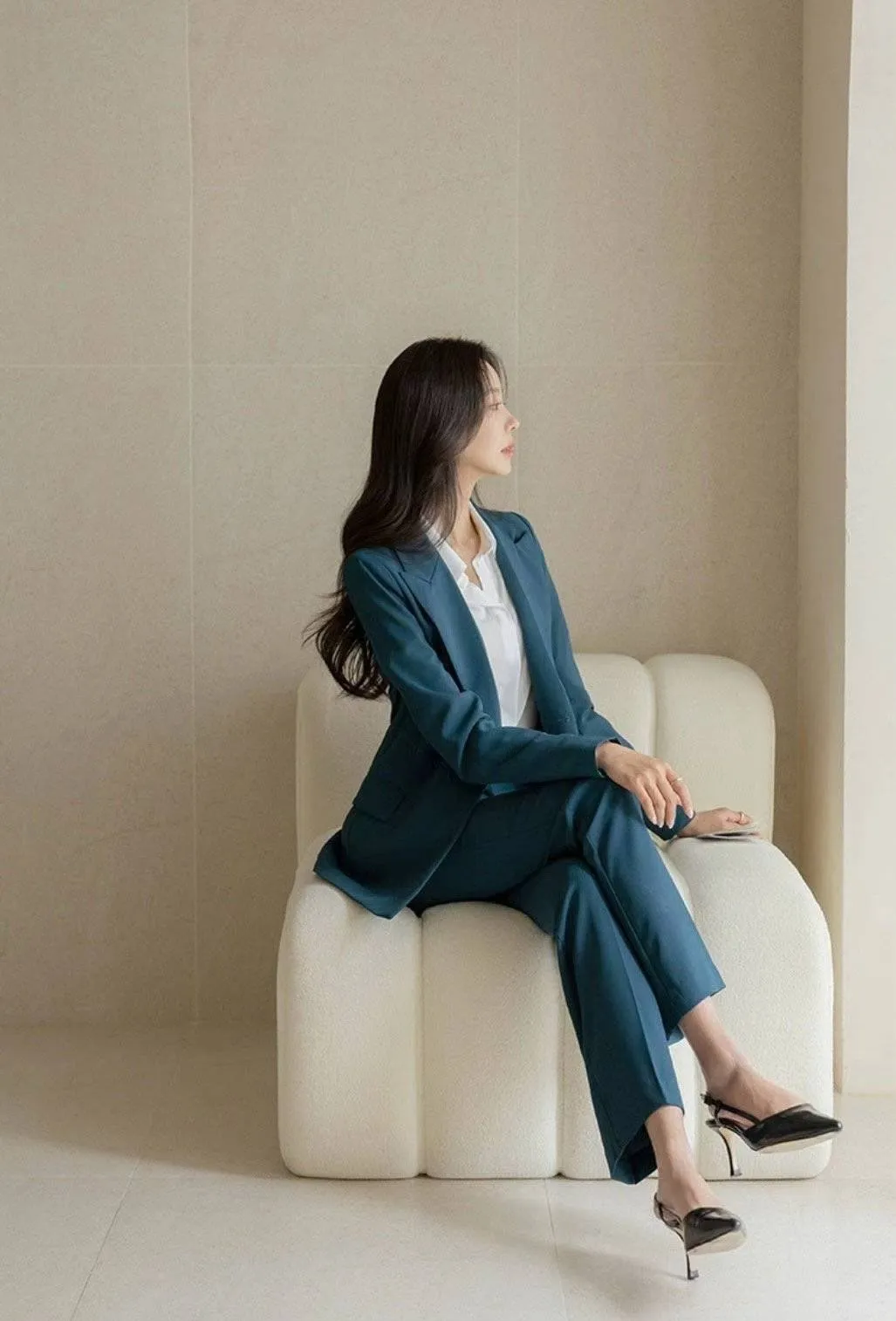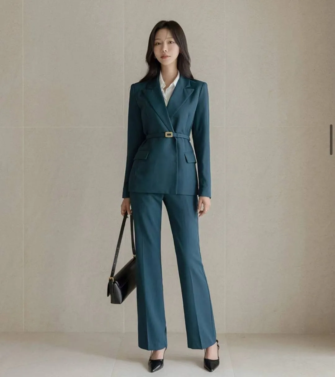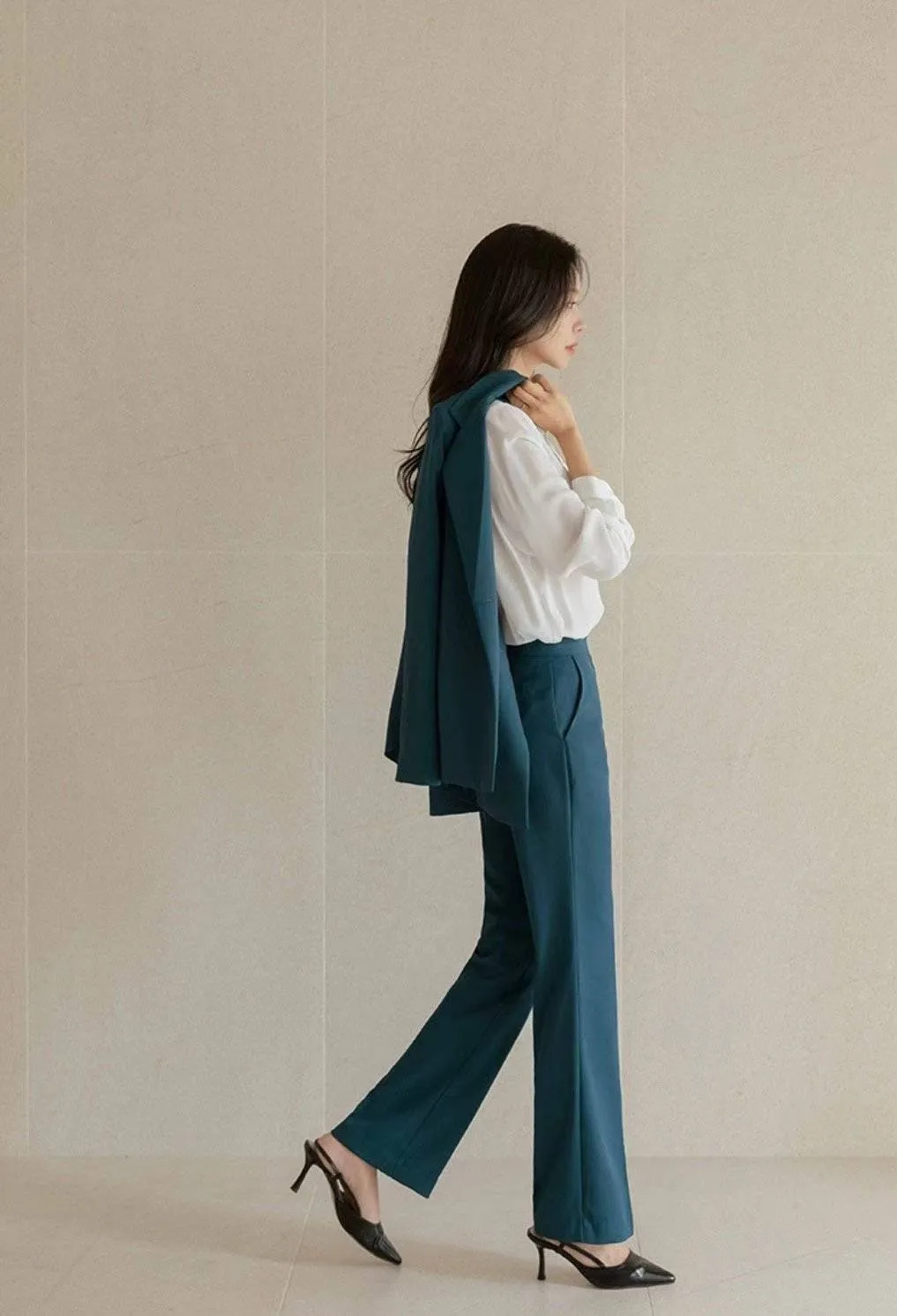 A38 1001名媛套裝家直線條微喇叭西裝褲