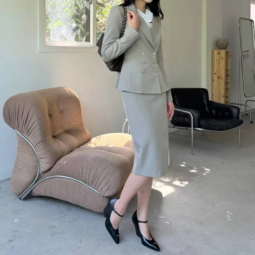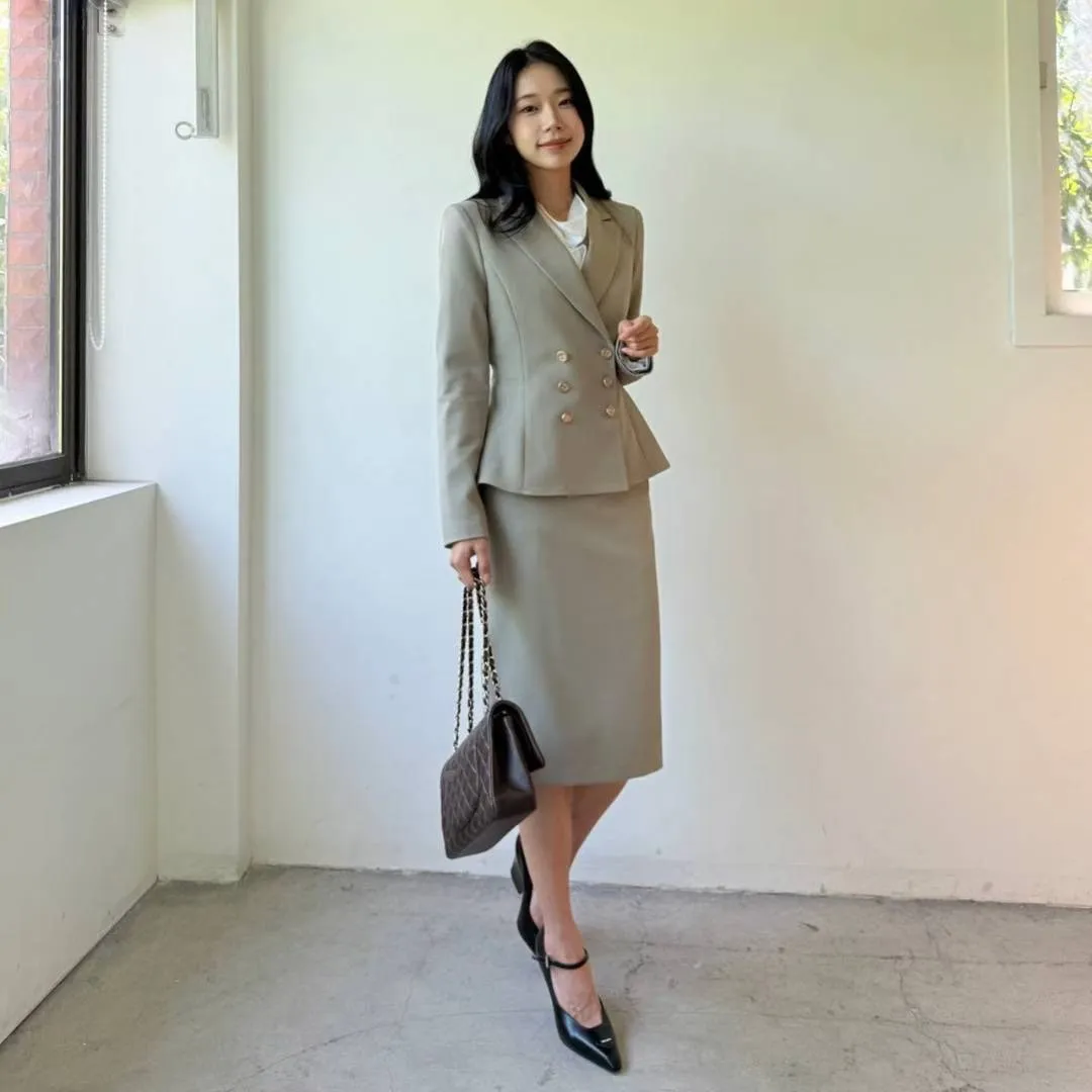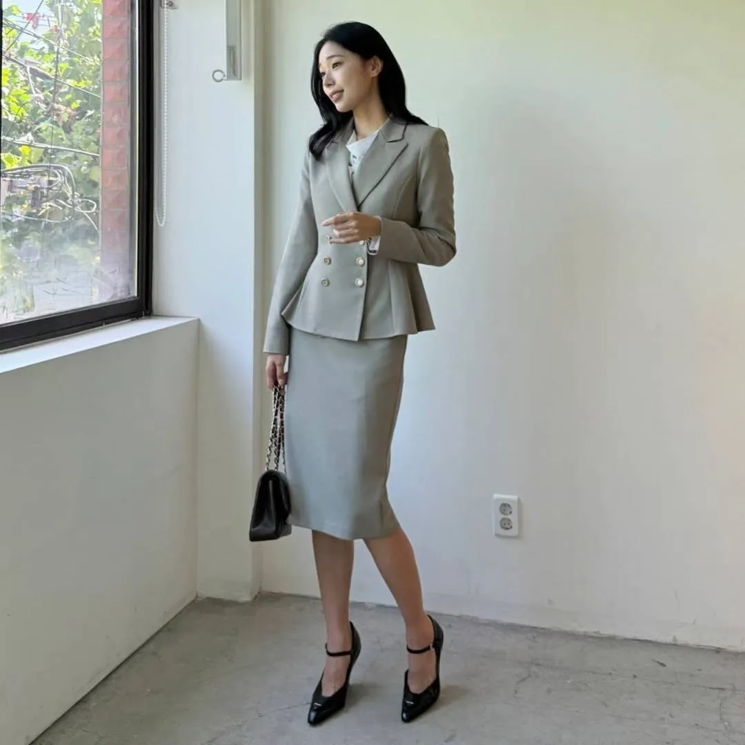 A39 1001名媛套裝家雙排釦翻領西裝外套