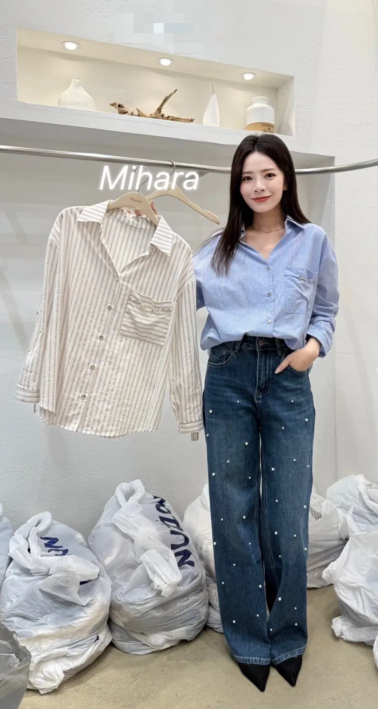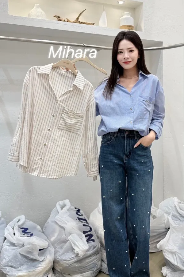 A56 1001雪紡家直紋排釦立領V領襯衫