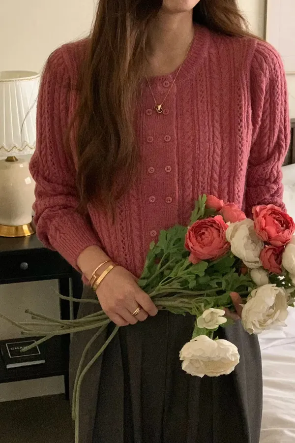 A77 1002氣質歐膩家雙排釦圓領羊毛混馬海毛針織毛衣