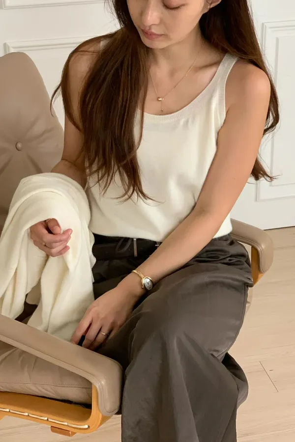 A78 1002氣質歐膩家寬肩帶大圓領羊毛100%背心