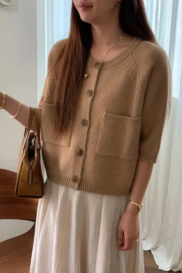 A85 1002氣質歐膩家排釦圓領羊毛混尼龍針織上衣
